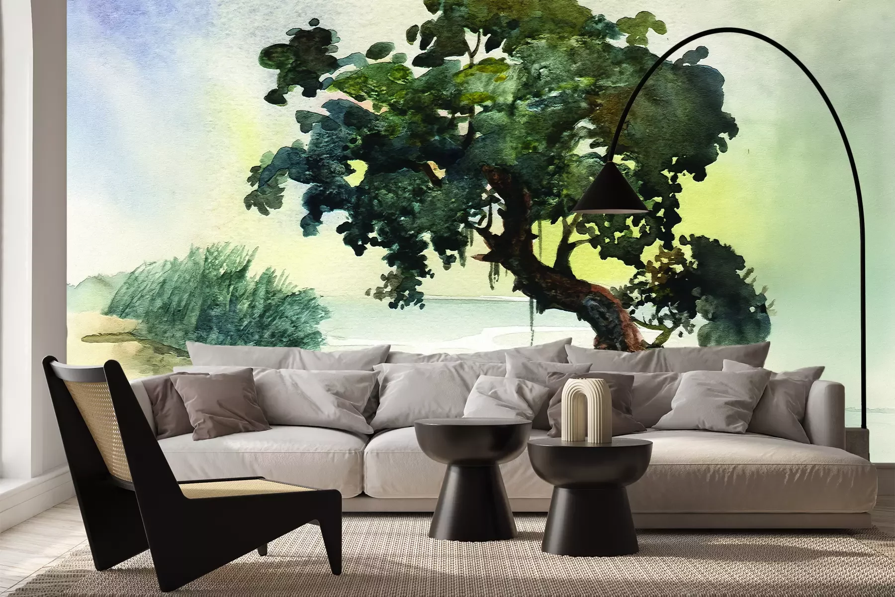 Het materiaal Premium+ is een gestructureerd vinyl op vlies met een gewicht van 255 g/m², dat kleine oneffenheden in de muur effectief camoufleert. De subtiele structuur van fijn zand geeft het oppervlak een exclusieve uitstraling, terwijl de halfmatte afwerking de diepte van de kleuren benadrukt. Het materiaal is dampdoorlatend, waardoor het ook in de keuken en badkamer kan worden gebruikt. De maximale breedte van één baan bedraagt 100 cm – bij grotere afmetingen wordt het fotobehang in meerdere gelijke banen verdeeld. De lijm wordt direct op de muur aangebracht en het behang wordt rand-aan-rand geplakt, wat zorgt voor een esthetisch resultaat zonder zichtbare naden. Het oppervlak kan gemakkelijk worden schoongemaakt door het voorzichtig af te nemen met een vochtige doek.