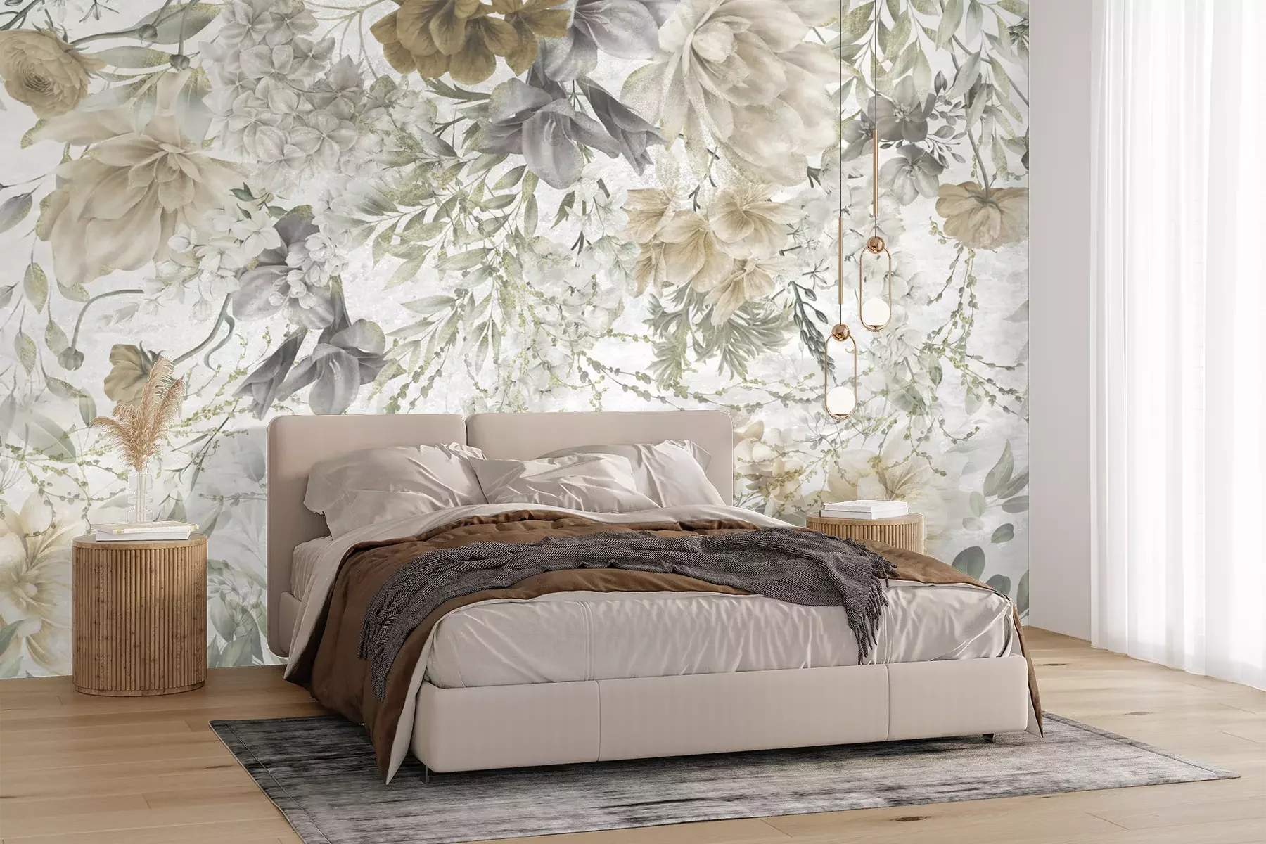 Het materiaal Premium+ is een gestructureerd vinyl op vlies met een gewicht van 255 g/m², dat kleine oneffenheden in de muur effectief camoufleert. De subtiele structuur van fijn zand geeft het oppervlak een exclusieve uitstraling, terwijl de halfmatte afwerking de diepte van de kleuren benadrukt. Het materiaal is dampdoorlatend, waardoor het ook in de keuken en badkamer kan worden gebruikt. De maximale breedte van één baan bedraagt 100 cm – bij grotere afmetingen wordt het fotobehang in meerdere gelijke banen verdeeld. De lijm wordt direct op de muur aangebracht en het behang wordt rand-aan-rand geplakt, wat zorgt voor een esthetisch resultaat zonder zichtbare naden. Het oppervlak kan gemakkelijk worden schoongemaakt door het voorzichtig af te nemen met een vochtige doek.