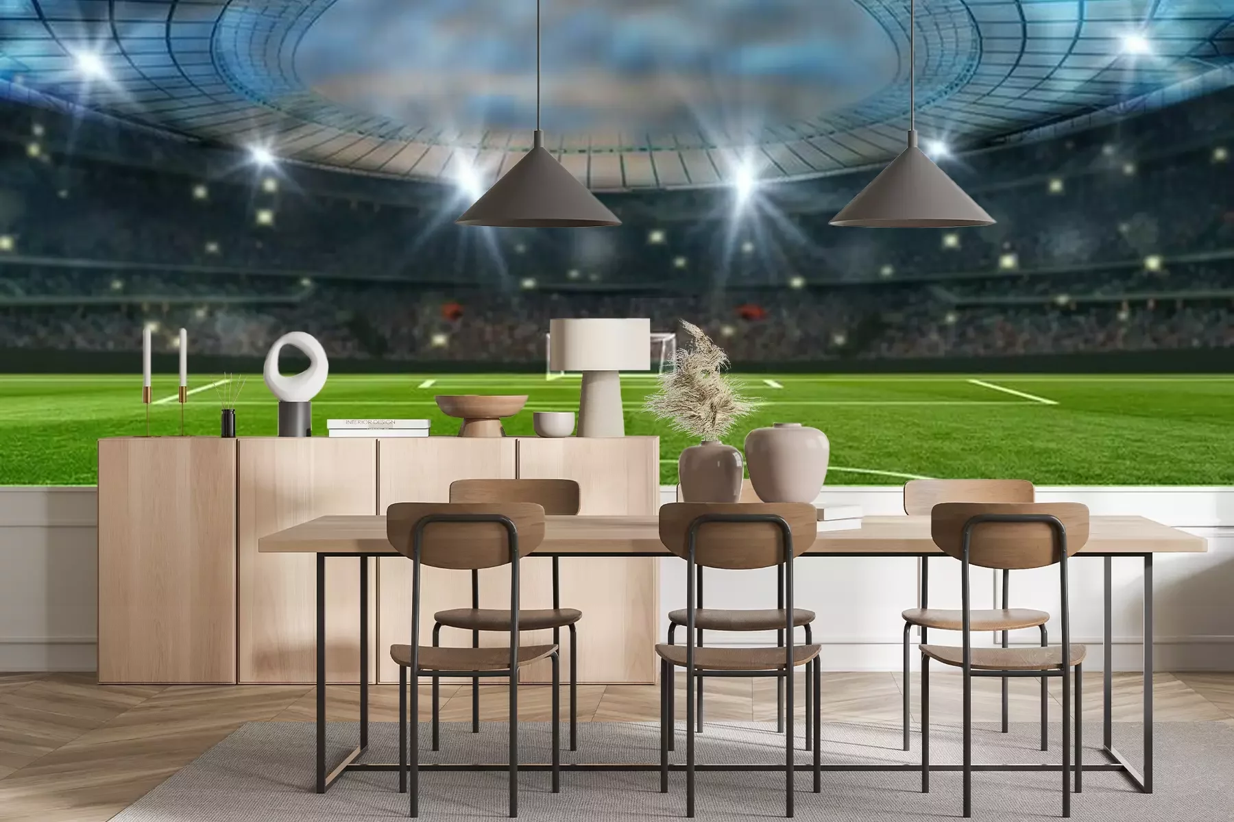 Het materiaal Premium+ is een gestructureerd vinyl op vlies met een gewicht van 255 g/m², dat kleine oneffenheden in de muur effectief camoufleert. De subtiele structuur van fijn zand geeft het oppervlak een exclusieve uitstraling, terwijl de halfmatte afwerking de diepte van de kleuren benadrukt. Het materiaal is dampdoorlatend, waardoor het ook in de keuken en badkamer kan worden gebruikt. De maximale breedte van één baan bedraagt 100 cm – bij grotere afmetingen wordt het fotobehang in meerdere gelijke banen verdeeld. De lijm wordt direct op de muur aangebracht en het behang wordt rand-aan-rand geplakt, wat zorgt voor een esthetisch resultaat zonder zichtbare naden. Het oppervlak kan gemakkelijk worden schoongemaakt door het voorzichtig af te nemen met een vochtige doek.