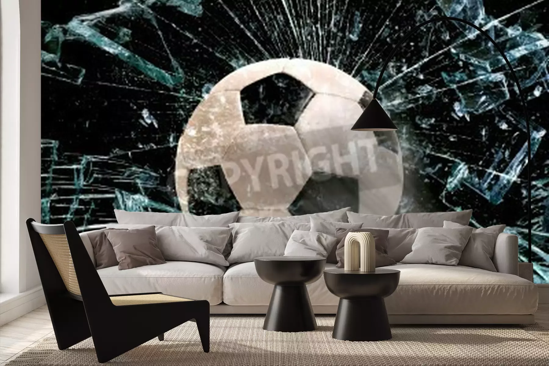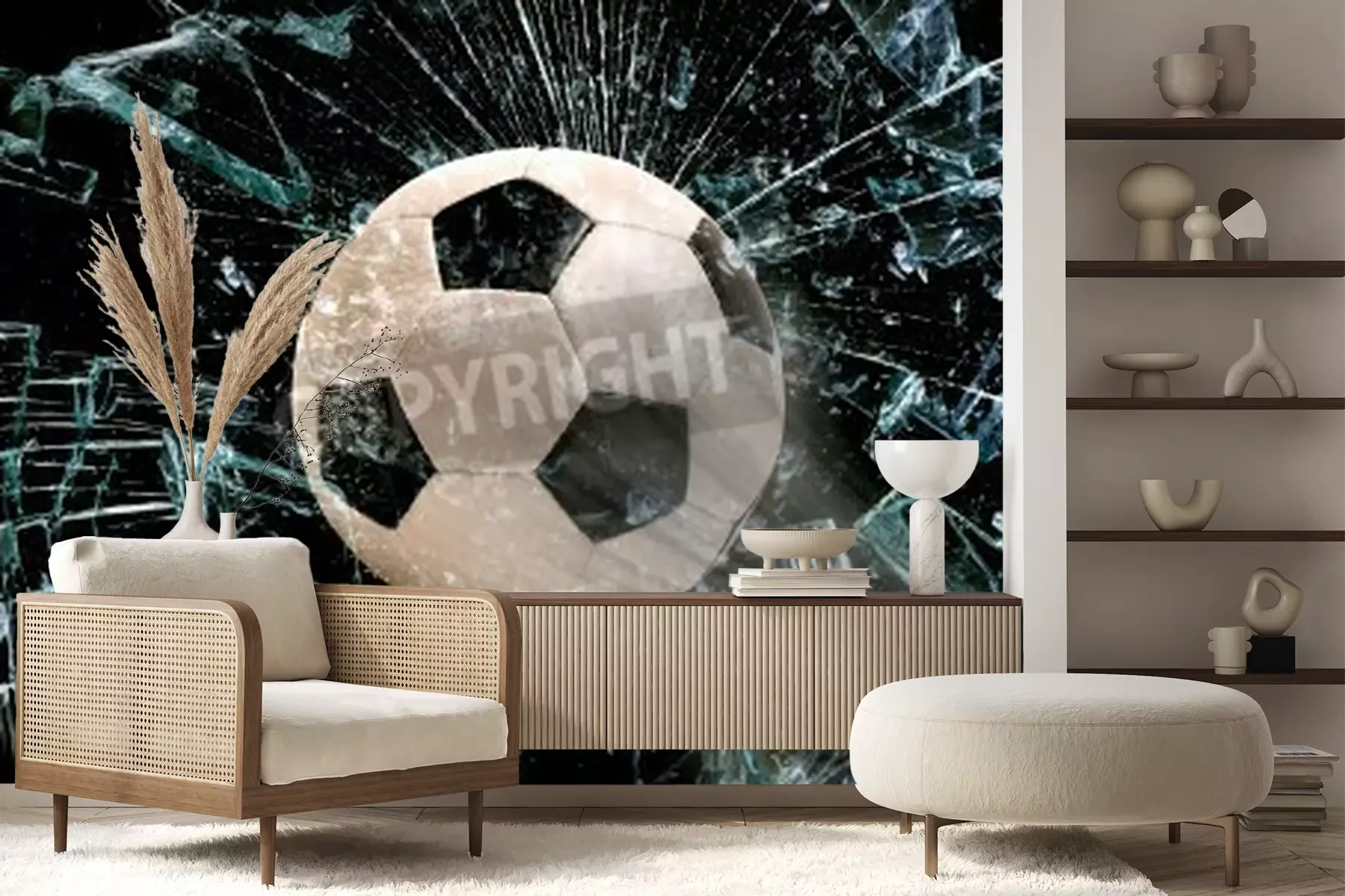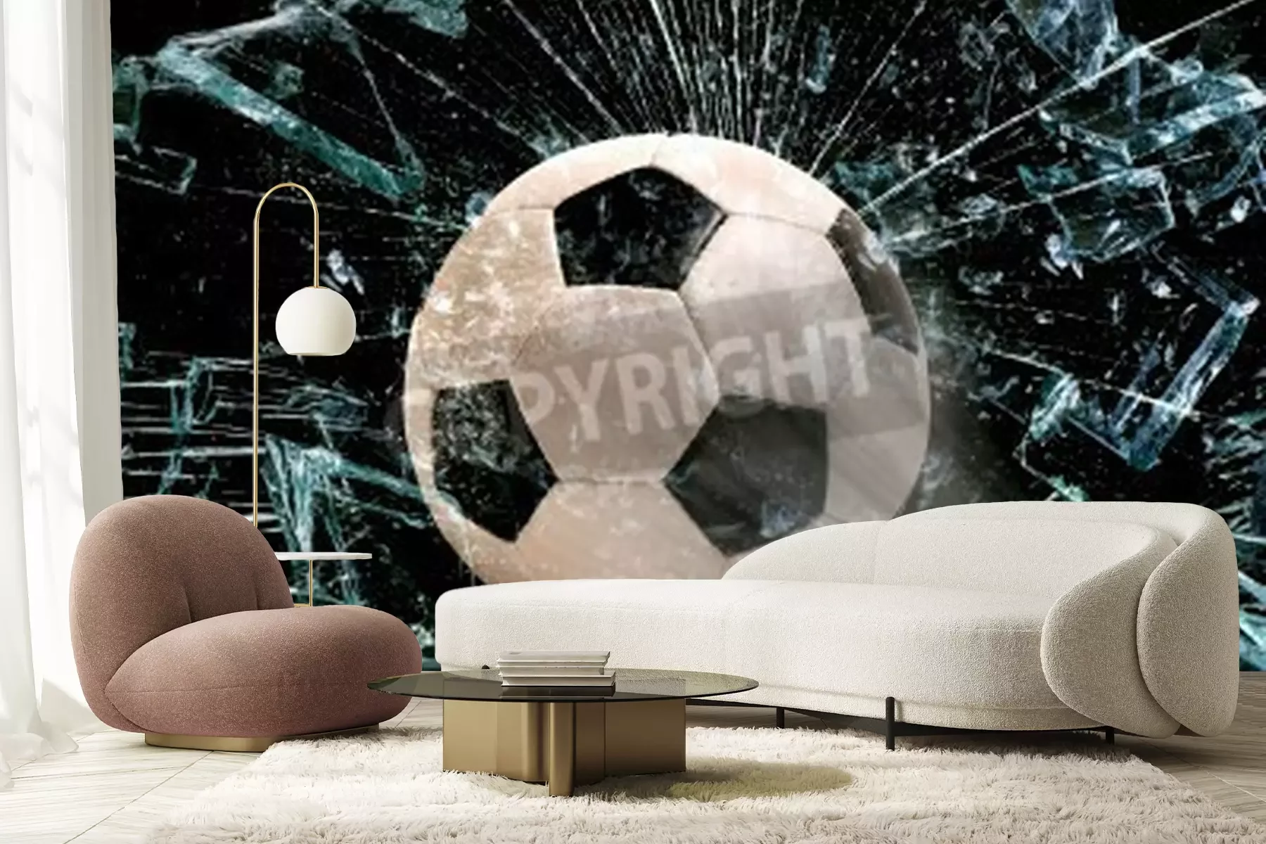 Fotobehang Een bal raakt het glas