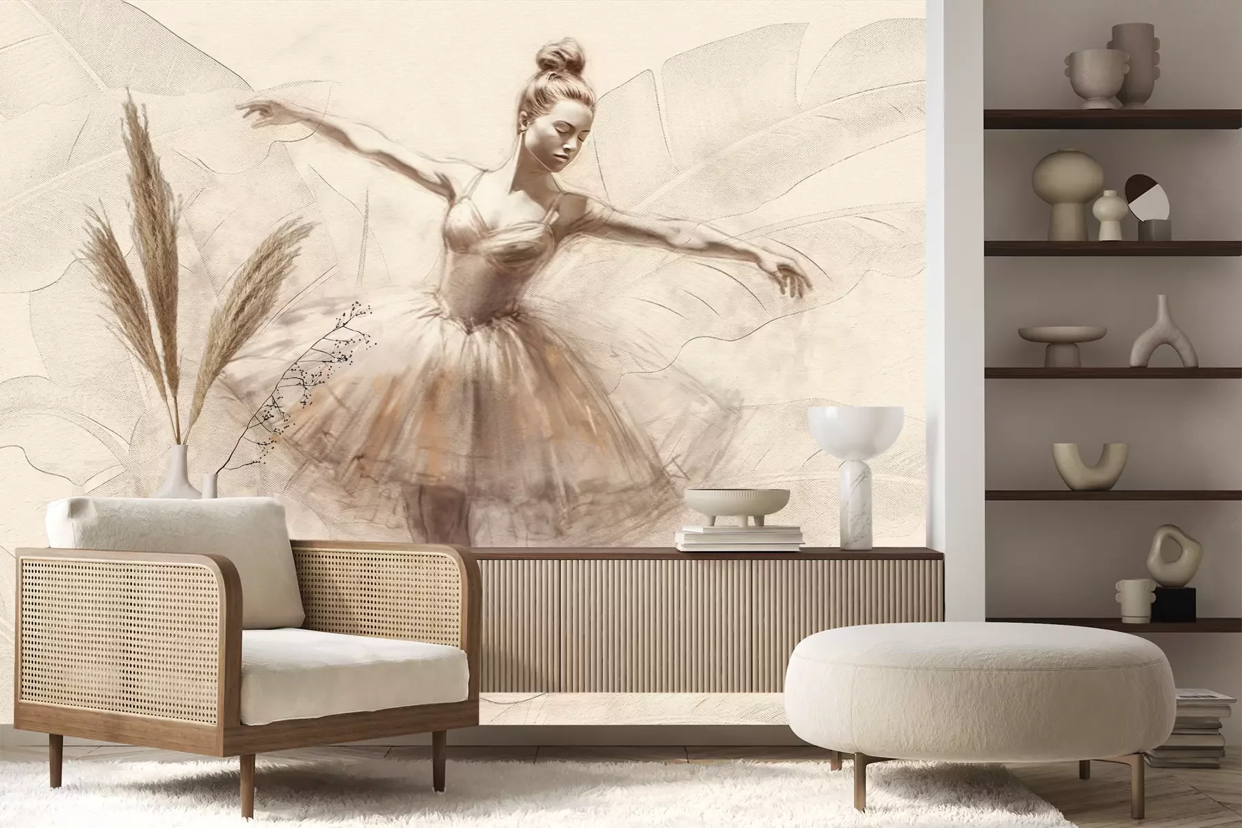 Het materiaal Premium+ is een gestructureerd vinyl op vlies met een gewicht van 255 g/m², dat kleine oneffenheden in de muur effectief camoufleert. De subtiele structuur van fijn zand geeft het oppervlak een exclusieve uitstraling, terwijl de halfmatte afwerking de diepte van de kleuren benadrukt. Het materiaal is dampdoorlatend, waardoor het ook in de keuken en badkamer kan worden gebruikt. De maximale breedte van één baan bedraagt 100 cm – bij grotere afmetingen wordt het fotobehang in meerdere gelijke banen verdeeld. De lijm wordt direct op de muur aangebracht en het behang wordt rand-aan-rand geplakt, wat zorgt voor een esthetisch resultaat zonder zichtbare naden. Het oppervlak kan gemakkelijk worden schoongemaakt door het voorzichtig af te nemen met een vochtige doek.