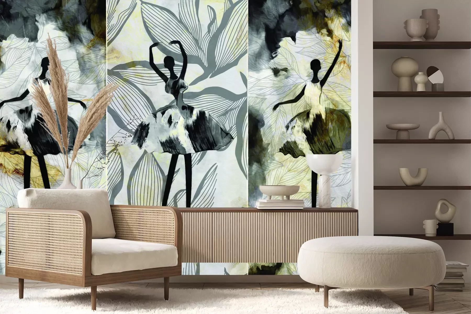 Het materiaal Premium+ is een gestructureerd vinyl op vlies met een gewicht van 255 g/m², dat kleine oneffenheden in de muur effectief camoufleert. De subtiele structuur van fijn zand geeft het oppervlak een exclusieve uitstraling, terwijl de halfmatte afwerking de diepte van de kleuren benadrukt. Het materiaal is dampdoorlatend, waardoor het ook in de keuken en badkamer kan worden gebruikt. De maximale breedte van één baan bedraagt 100 cm – bij grotere afmetingen wordt het fotobehang in meerdere gelijke banen verdeeld. De lijm wordt direct op de muur aangebracht en het behang wordt rand-aan-rand geplakt, wat zorgt voor een esthetisch resultaat zonder zichtbare naden. Het oppervlak kan gemakkelijk worden schoongemaakt door het voorzichtig af te nemen met een vochtige doek.