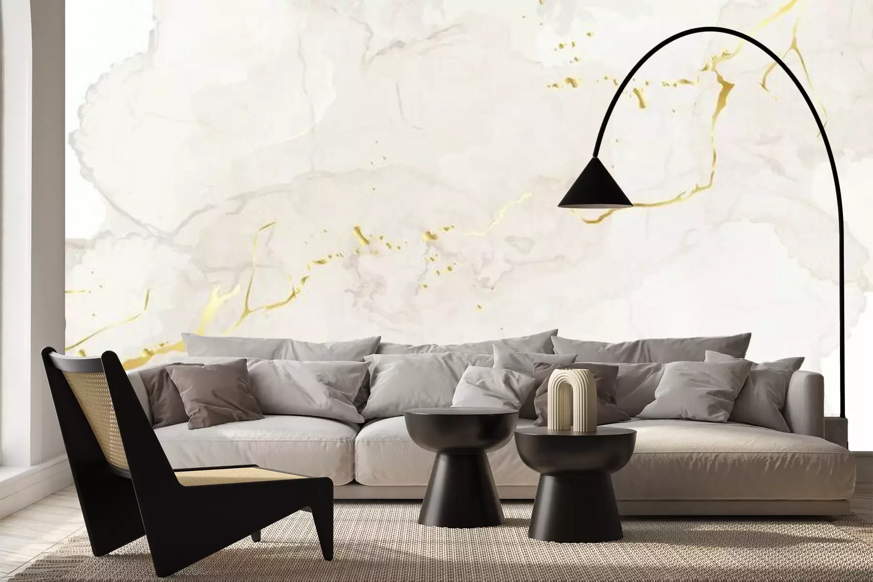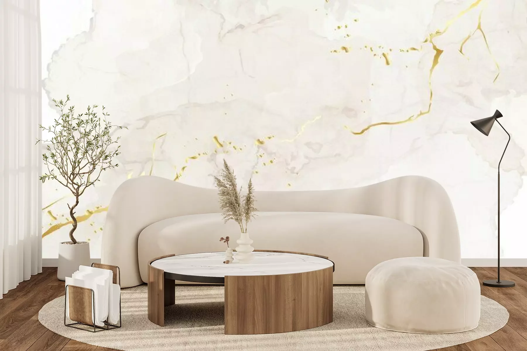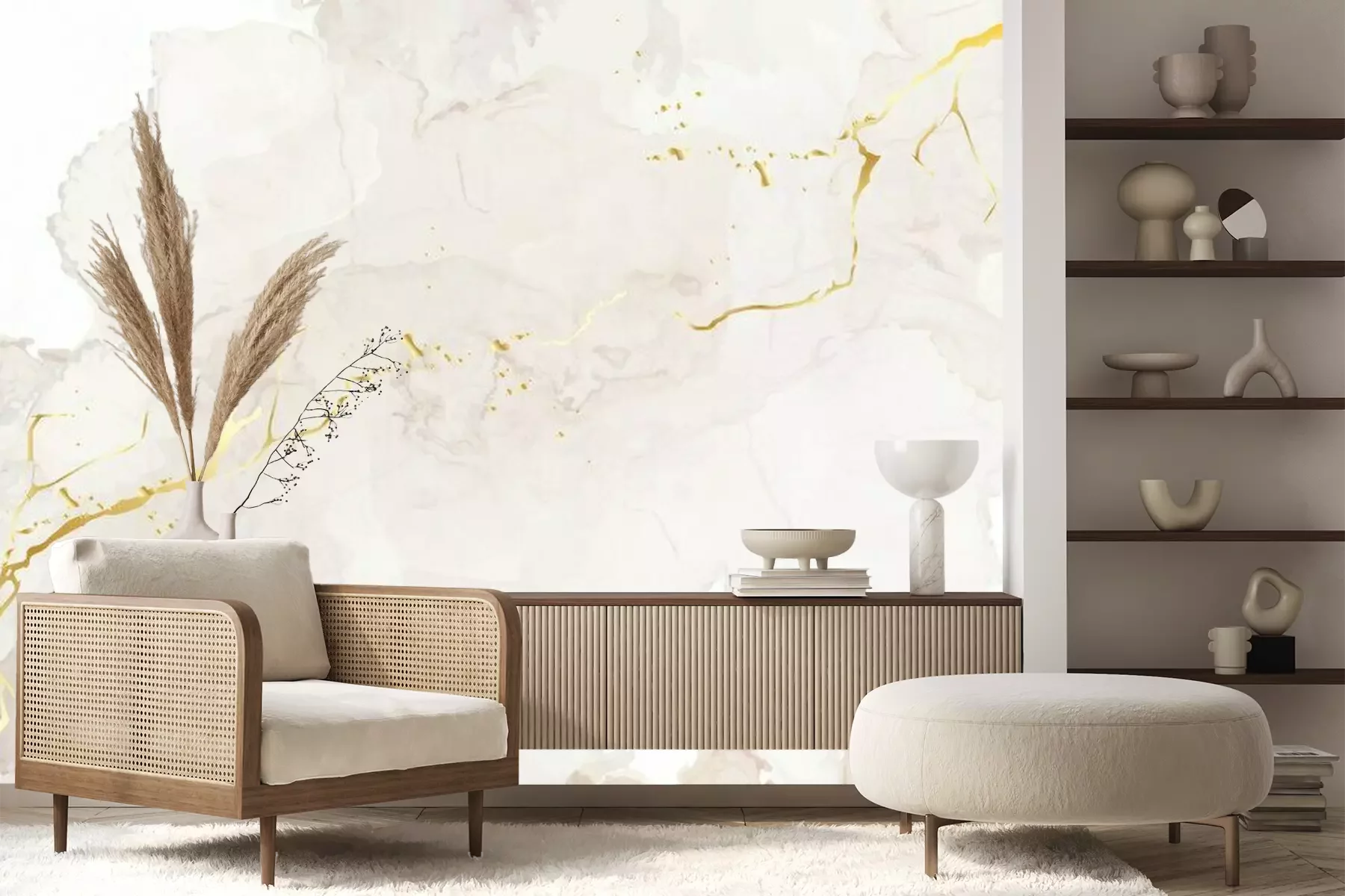 Fotobehang Een beige vlek gesneden met een gouden lint