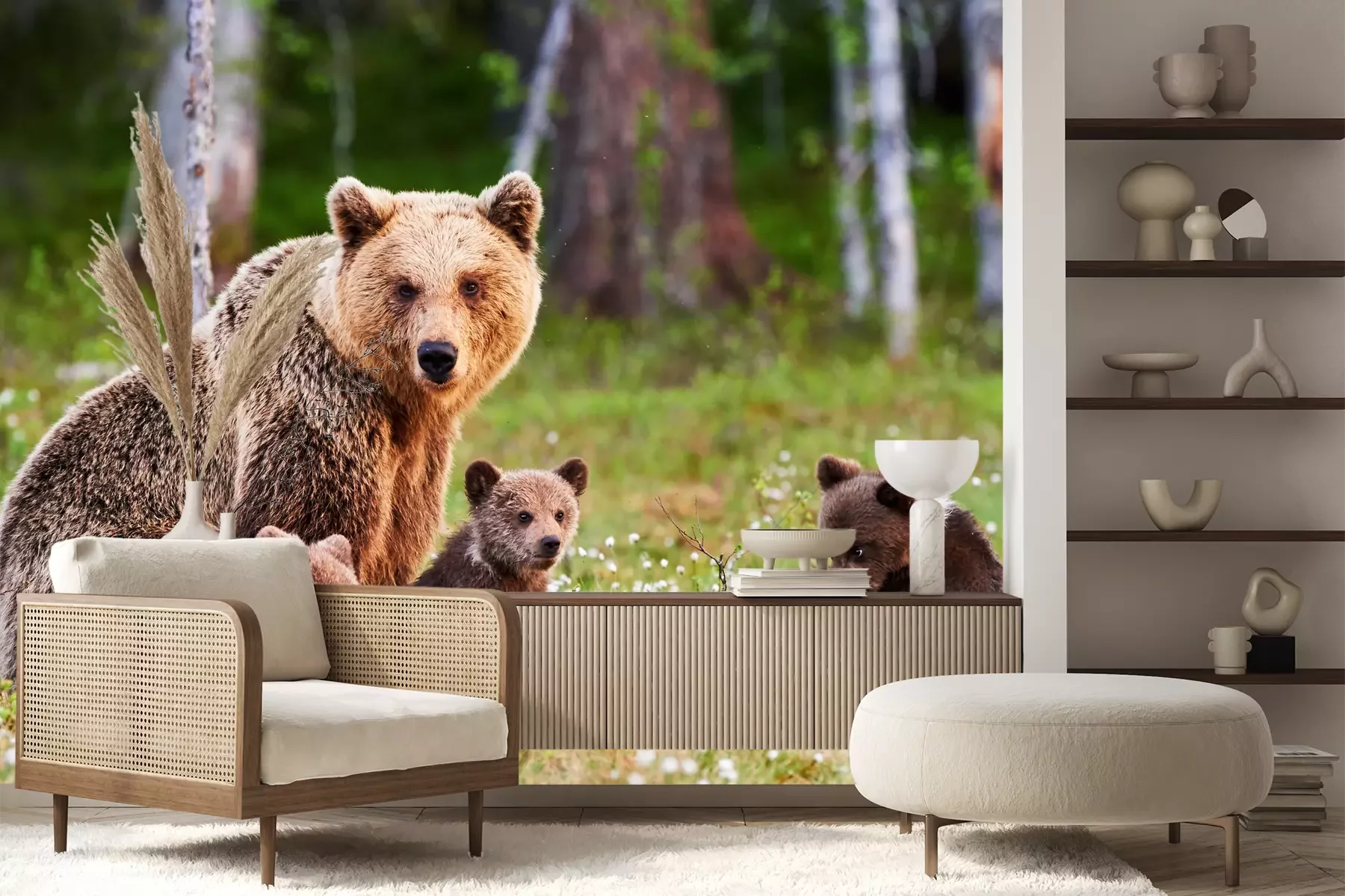 Moeder beer en cubFotobehang
