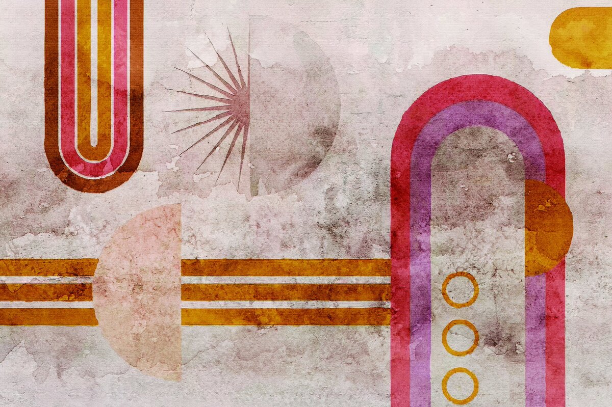 Fotobehang: Een betonnen muur met een geometrische opstelling van bogen
