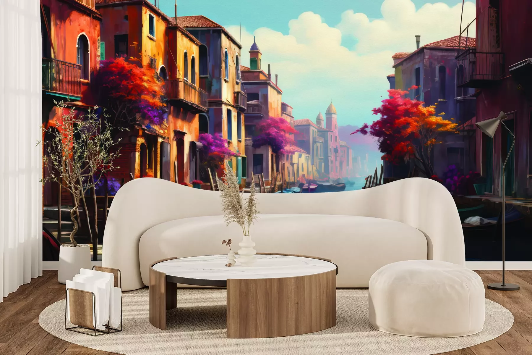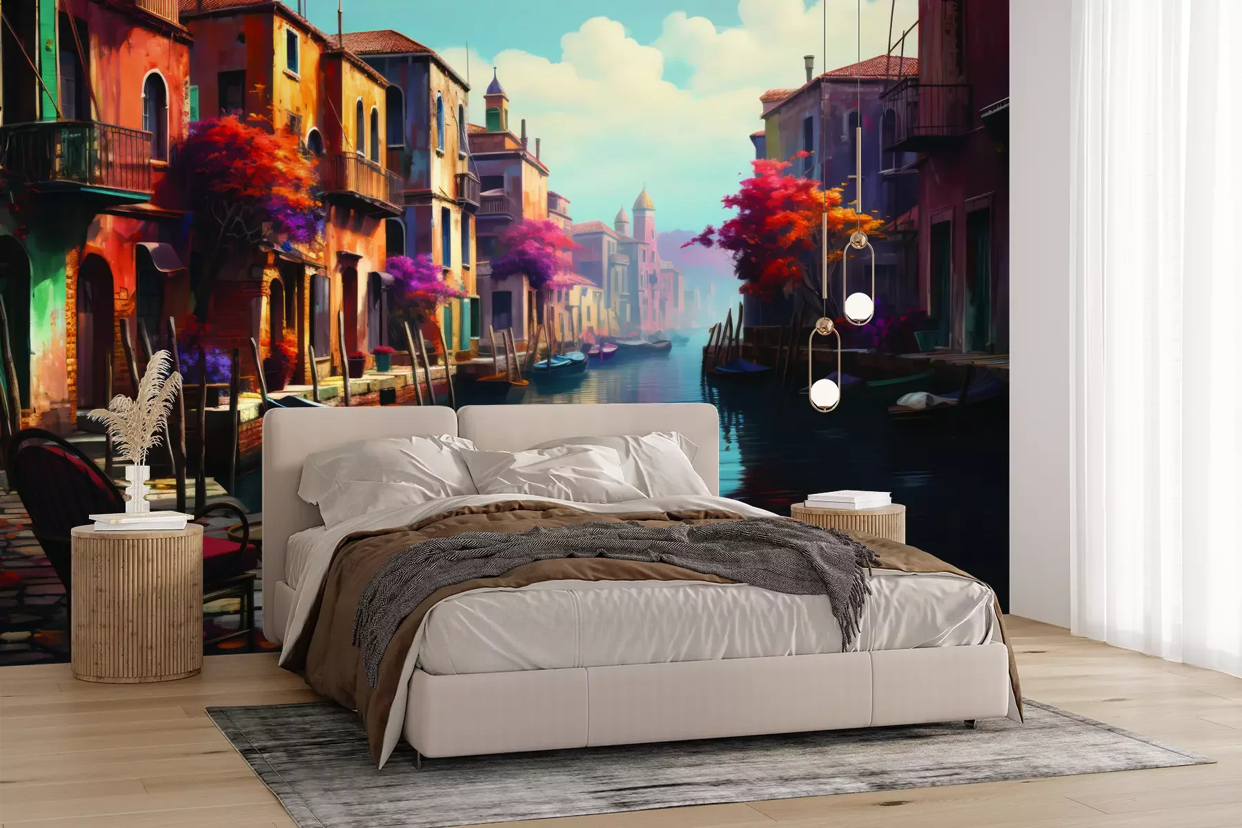 Het materiaal Premium+ is een gestructureerd vinyl op vlies met een gewicht van 255 g/m², dat kleine oneffenheden in de muur effectief camoufleert. De subtiele structuur van fijn zand geeft het oppervlak een exclusieve uitstraling, terwijl de halfmatte afwerking de diepte van de kleuren benadrukt. Het materiaal is dampdoorlatend, waardoor het ook in de keuken en badkamer kan worden gebruikt. De maximale breedte van één baan bedraagt 100 cm – bij grotere afmetingen wordt het fotobehang in meerdere gelijke banen verdeeld. De lijm wordt direct op de muur aangebracht en het behang wordt rand-aan-rand geplakt, wat zorgt voor een esthetisch resultaat zonder zichtbare naden. Het oppervlak kan gemakkelijk worden schoongemaakt door het voorzichtig af te nemen met een vochtige doek.