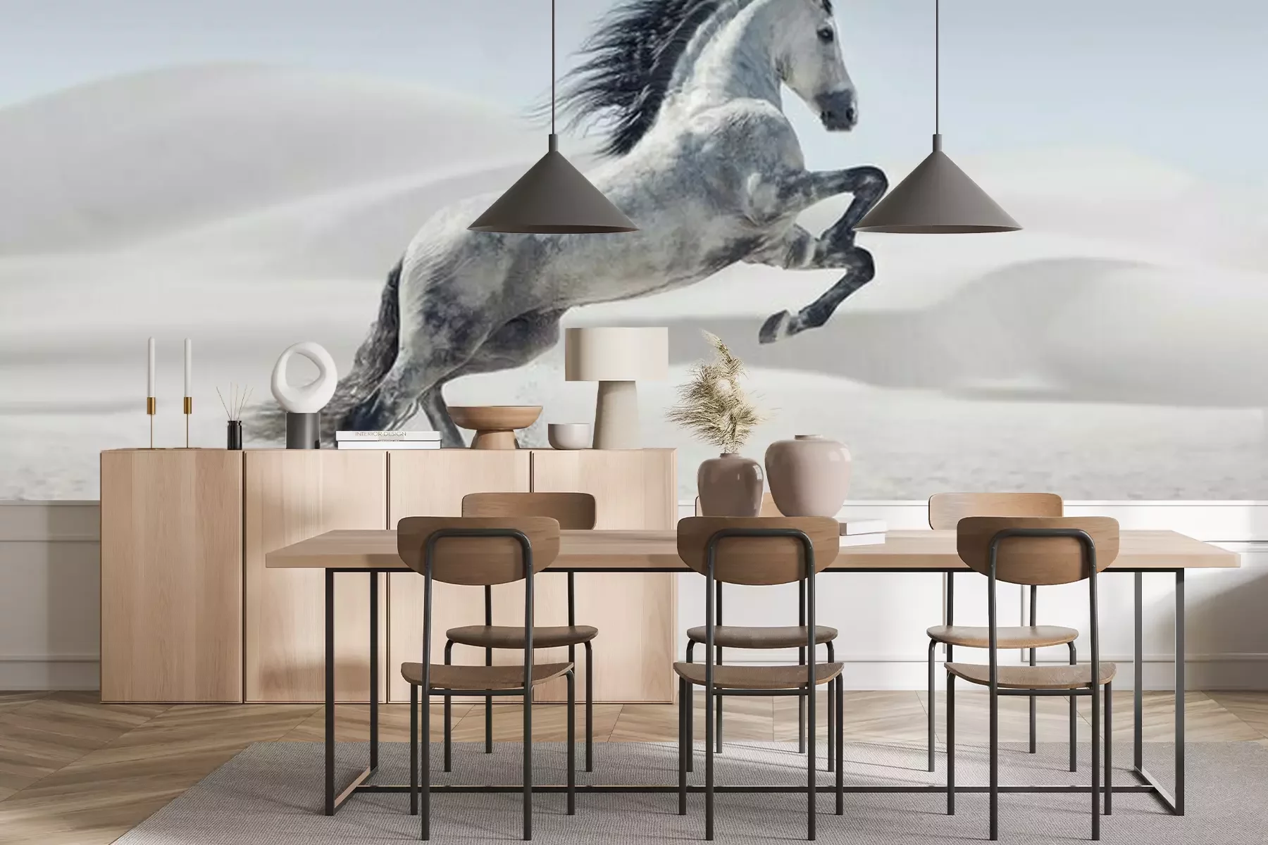 Het materiaal Premium+ is een gestructureerd vinyl op vlies met een gewicht van 255 g/m², dat kleine oneffenheden in de muur effectief camoufleert. De subtiele structuur van fijn zand geeft het oppervlak een exclusieve uitstraling, terwijl de halfmatte afwerking de diepte van de kleuren benadrukt. Het materiaal is dampdoorlatend, waardoor het ook in de keuken en badkamer kan worden gebruikt. De maximale breedte van één baan bedraagt 100 cm – bij grotere afmetingen wordt het fotobehang in meerdere gelijke banen verdeeld. De lijm wordt direct op de muur aangebracht en het behang wordt rand-aan-rand geplakt, wat zorgt voor een esthetisch resultaat zonder zichtbare naden. Het oppervlak kan gemakkelijk worden schoongemaakt door het voorzichtig af te nemen met een vochtige doek.