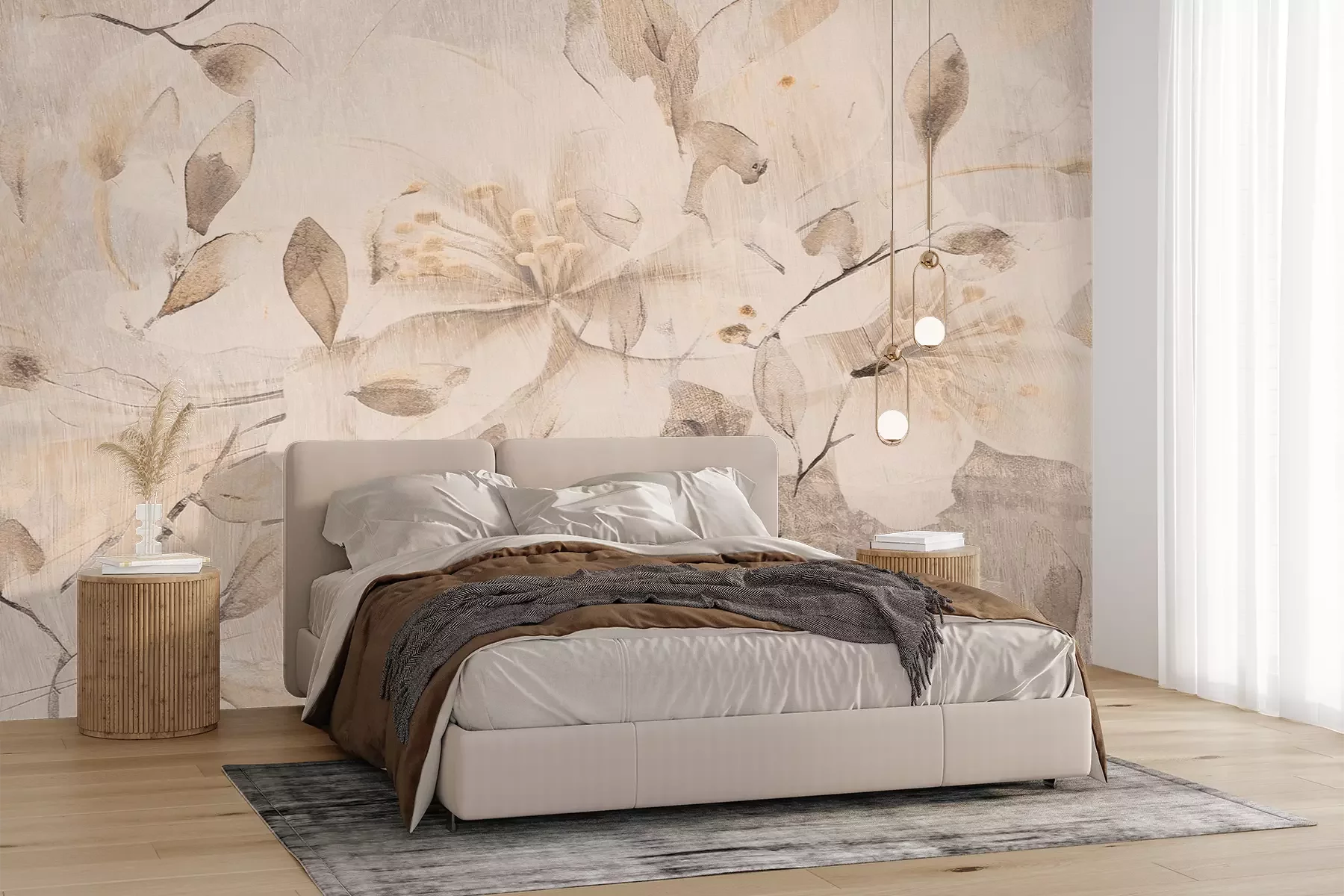 Het materiaal Premium+ is een gestructureerd vinyl op vlies met een gewicht van 255 g/m², dat kleine oneffenheden in de muur effectief camoufleert. De subtiele structuur van fijn zand geeft het oppervlak een exclusieve uitstraling, terwijl de halfmatte afwerking de diepte van de kleuren benadrukt. Het materiaal is dampdoorlatend, waardoor het ook in de keuken en badkamer kan worden gebruikt. De maximale breedte van één baan bedraagt 100 cm – bij grotere afmetingen wordt het fotobehang in meerdere gelijke banen verdeeld. De lijm wordt direct op de muur aangebracht en het behang wordt rand-aan-rand geplakt, wat zorgt voor een esthetisch resultaat zonder zichtbare naden. Het oppervlak kan gemakkelijk worden schoongemaakt door het voorzichtig af te nemen met een vochtige doek.