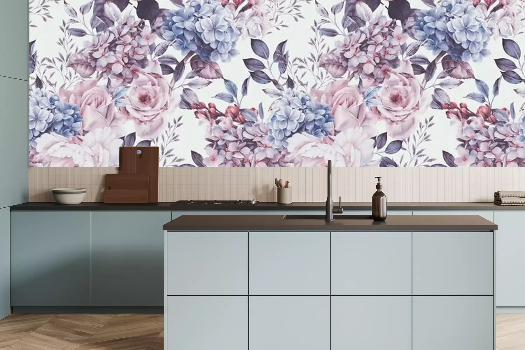 Het materiaal Premium is een glad vinyl op vlies, dat bestand is tegen uitrekken en vervorming. Het is dampdoorlatend – de muren kunnen vrij ademen – waardoor het geschikt is voor gebruik in de keuken en badkamer. Bij vervuiling kan het materiaal worden afgenomen met een vochtige doek. De maximale breedte van één baan bedraagt 95 of 105 cm, afhankelijk van de beschikbaarheid. Montage vindt plaats met de rand-aan-rand methode, wat een esthetisch resultaat zonder zichtbare naden oplevert. Omdat de lijm rechtstreeks op de muur wordt aangebracht, verloopt de installatie van het fotobehang snel en eenvoudig.
