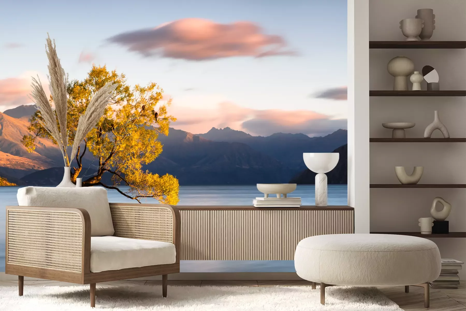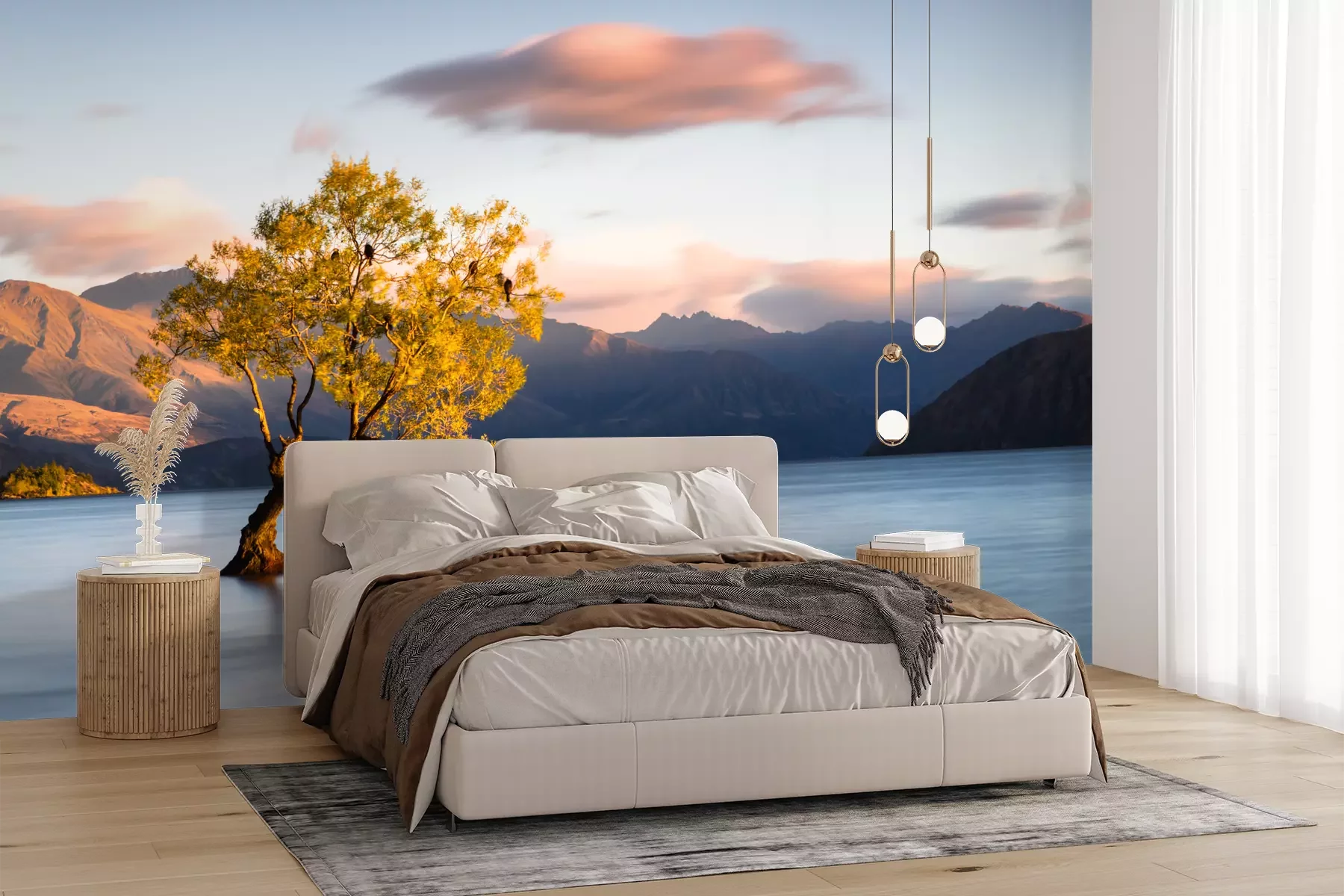 Het materiaal Premium+ is een gestructureerd vinyl op vlies met een gewicht van 255 g/m², dat kleine oneffenheden in de muur effectief camoufleert. De subtiele structuur van fijn zand geeft het oppervlak een exclusieve uitstraling, terwijl de halfmatte afwerking de diepte van de kleuren benadrukt. Het materiaal is dampdoorlatend, waardoor het ook in de keuken en badkamer kan worden gebruikt. De maximale breedte van één baan bedraagt 100 cm – bij grotere afmetingen wordt het fotobehang in meerdere gelijke banen verdeeld. De lijm wordt direct op de muur aangebracht en het behang wordt rand-aan-rand geplakt, wat zorgt voor een esthetisch resultaat zonder zichtbare naden. Het oppervlak kan gemakkelijk worden schoongemaakt door het voorzichtig af te nemen met een vochtige doek.