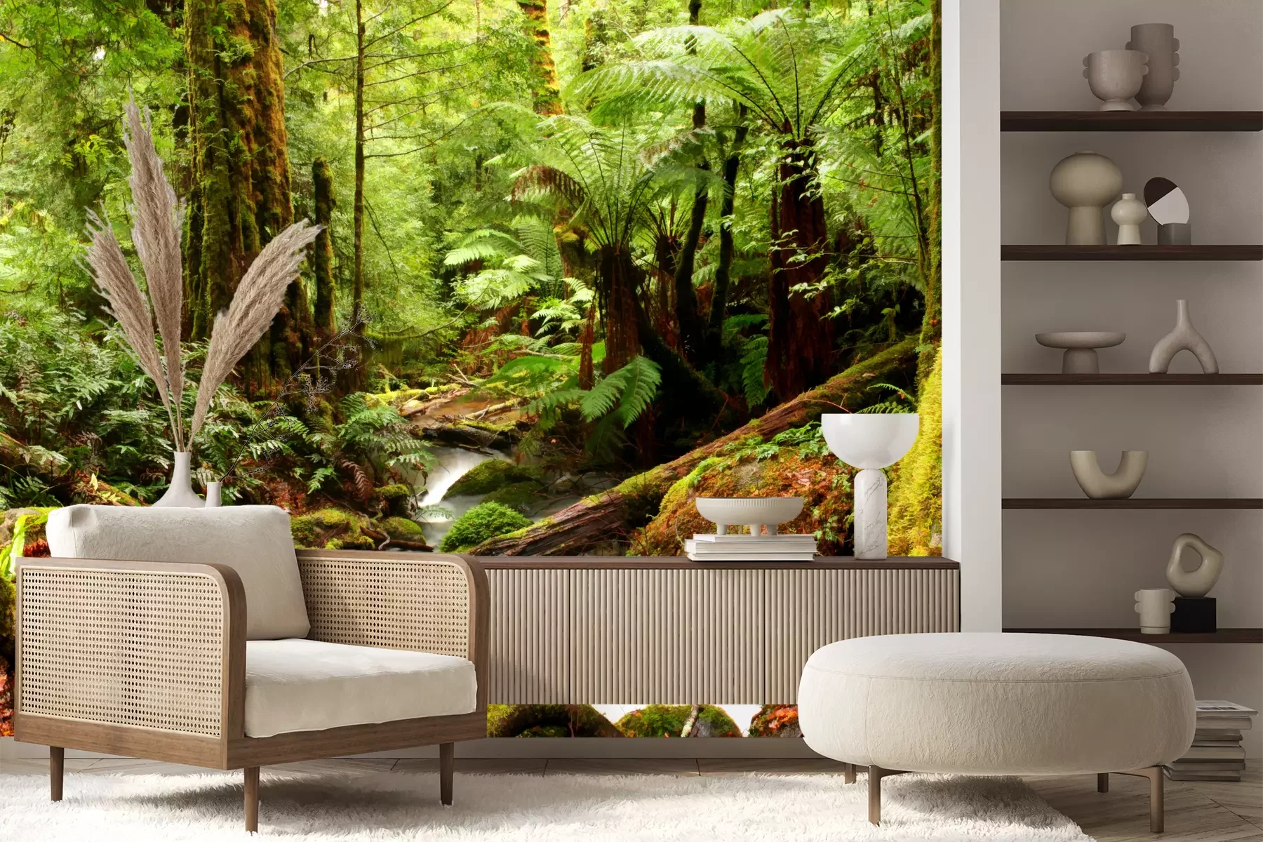 Het materiaal Premium+ is een gestructureerd vinyl op vlies met een gewicht van 255 g/m², dat kleine oneffenheden in de muur effectief camoufleert. De subtiele structuur van fijn zand geeft het oppervlak een exclusieve uitstraling, terwijl de halfmatte afwerking de diepte van de kleuren benadrukt. Het materiaal is dampdoorlatend, waardoor het ook in de keuken en badkamer kan worden gebruikt. De maximale breedte van één baan bedraagt 100 cm – bij grotere afmetingen wordt het fotobehang in meerdere gelijke banen verdeeld. De lijm wordt direct op de muur aangebracht en het behang wordt rand-aan-rand geplakt, wat zorgt voor een esthetisch resultaat zonder zichtbare naden. Het oppervlak kan gemakkelijk worden schoongemaakt door het voorzichtig af te nemen met een vochtige doek.