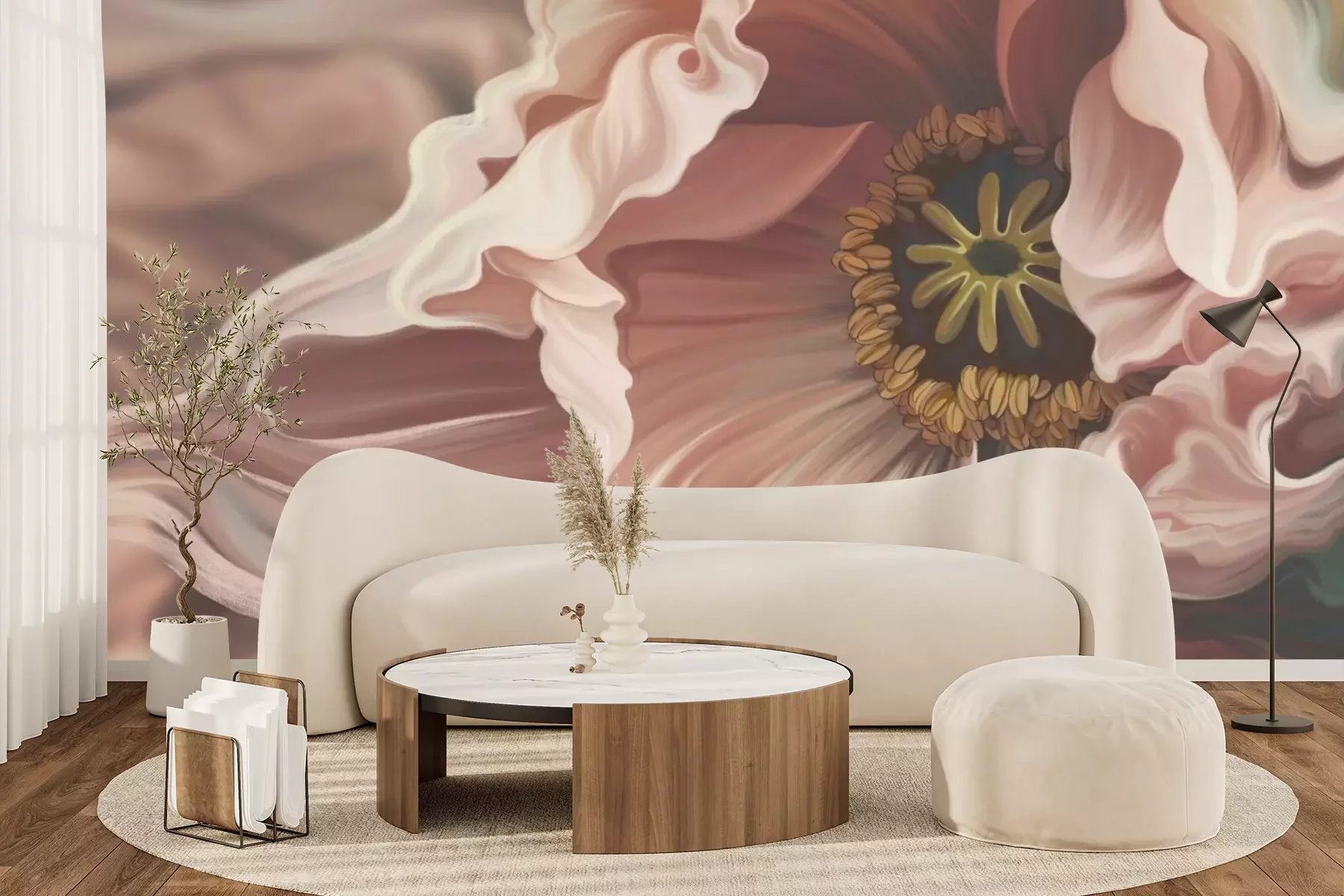 Het materiaal Standard is een hoogwaardig latexmateriaal met een glad, mat oppervlak. Dankzij de HP Latex-printtechnologie zijn de kleuren intens, duurzaam en UV-bestendig, waardoor het patroon jarenlang een onberispelijke uitstraling behoudt. Vervuilde oppervlakken kunnen voorzichtig worden afgeveegd met een droge doek. De maximale breedte van één baan bedraagt 95 cm of 105 cm – afhankelijk van de bestelde fotobehangbreedte. Bij grotere afmetingen wordt het patroon verdeeld over meerdere gelijkmatige banen. Het fotobehang wordt rand-aan-randaangebracht, wat vrijwel onzichtbare naden mogelijk maakt.
