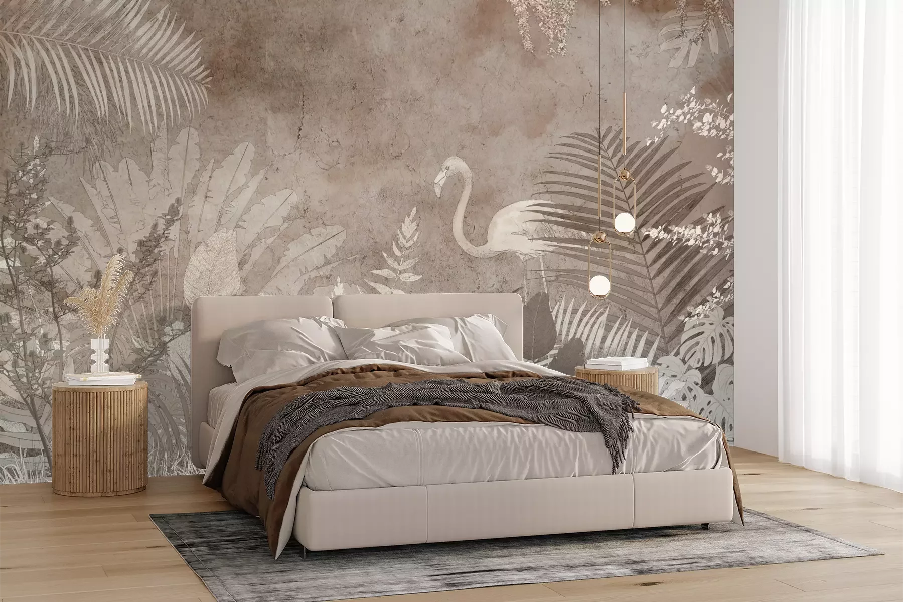 Het materiaal Premium+ is een gestructureerd vinyl op vlies met een gewicht van 255 g/m², dat kleine oneffenheden in de muur effectief camoufleert. De subtiele structuur van fijn zand geeft het oppervlak een exclusieve uitstraling, terwijl de halfmatte afwerking de diepte van de kleuren benadrukt. Het materiaal is dampdoorlatend, waardoor het ook in de keuken en badkamer kan worden gebruikt. De maximale breedte van één baan bedraagt 100 cm – bij grotere afmetingen wordt het fotobehang in meerdere gelijke banen verdeeld. De lijm wordt direct op de muur aangebracht en het behang wordt rand-aan-rand geplakt, wat zorgt voor een esthetisch resultaat zonder zichtbare naden. Het oppervlak kan gemakkelijk worden schoongemaakt door het voorzichtig af te nemen met een vochtige doek.