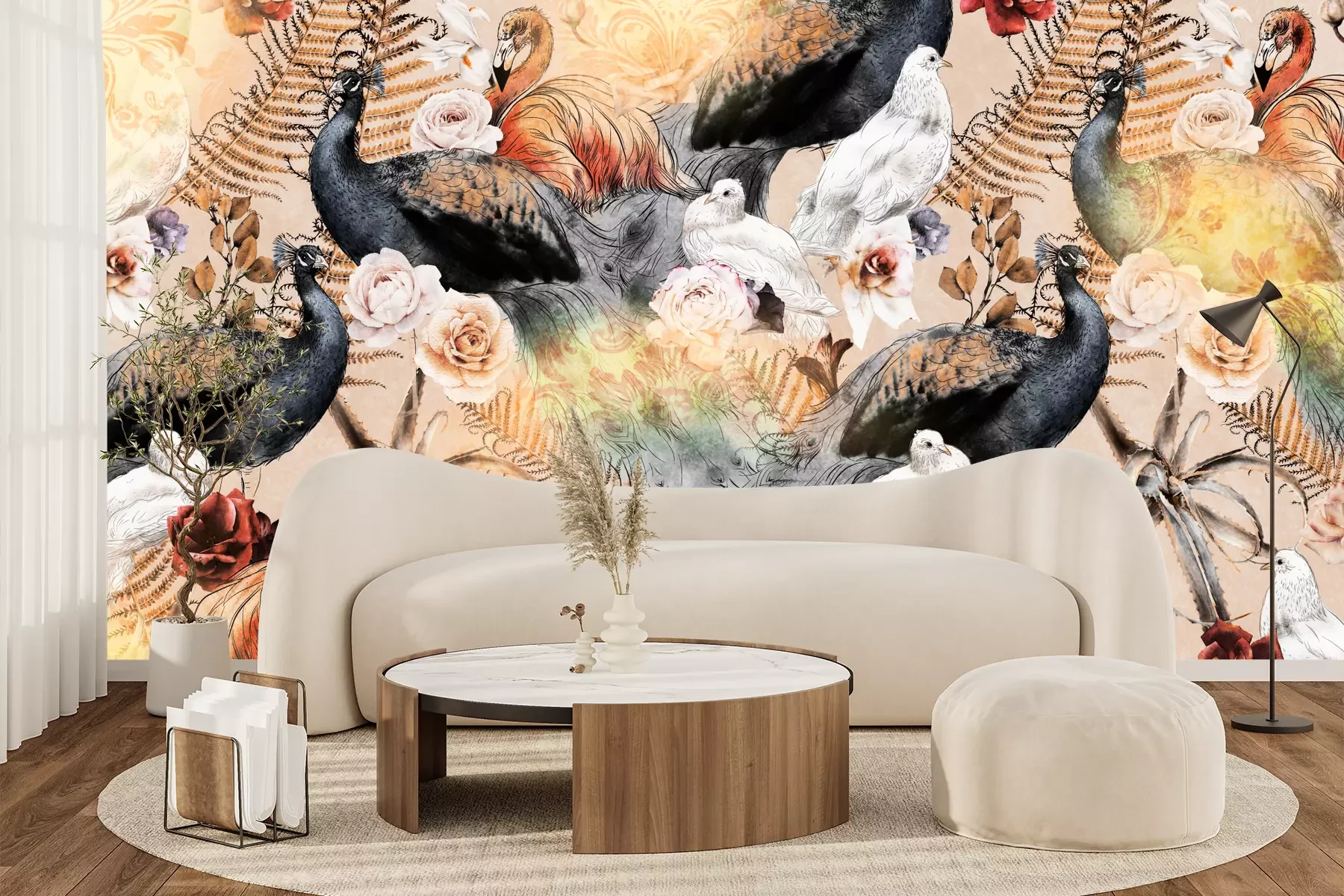 Het materiaal Standard is een hoogwaardig latexmateriaal met een glad, mat oppervlak. Dankzij de HP Latex-printtechnologie zijn de kleuren intens, duurzaam en UV-bestendig, waardoor het patroon jarenlang een onberispelijke uitstraling behoudt. Vervuilde oppervlakken kunnen voorzichtig worden afgeveegd met een droge doek. De maximale breedte van één baan bedraagt 95 cm of 105 cm – afhankelijk van de bestelde fotobehangbreedte. Bij grotere afmetingen wordt het patroon verdeeld over meerdere gelijkmatige banen. Het fotobehang wordt rand-aan-randaangebracht, wat vrijwel onzichtbare naden mogelijk maakt.
