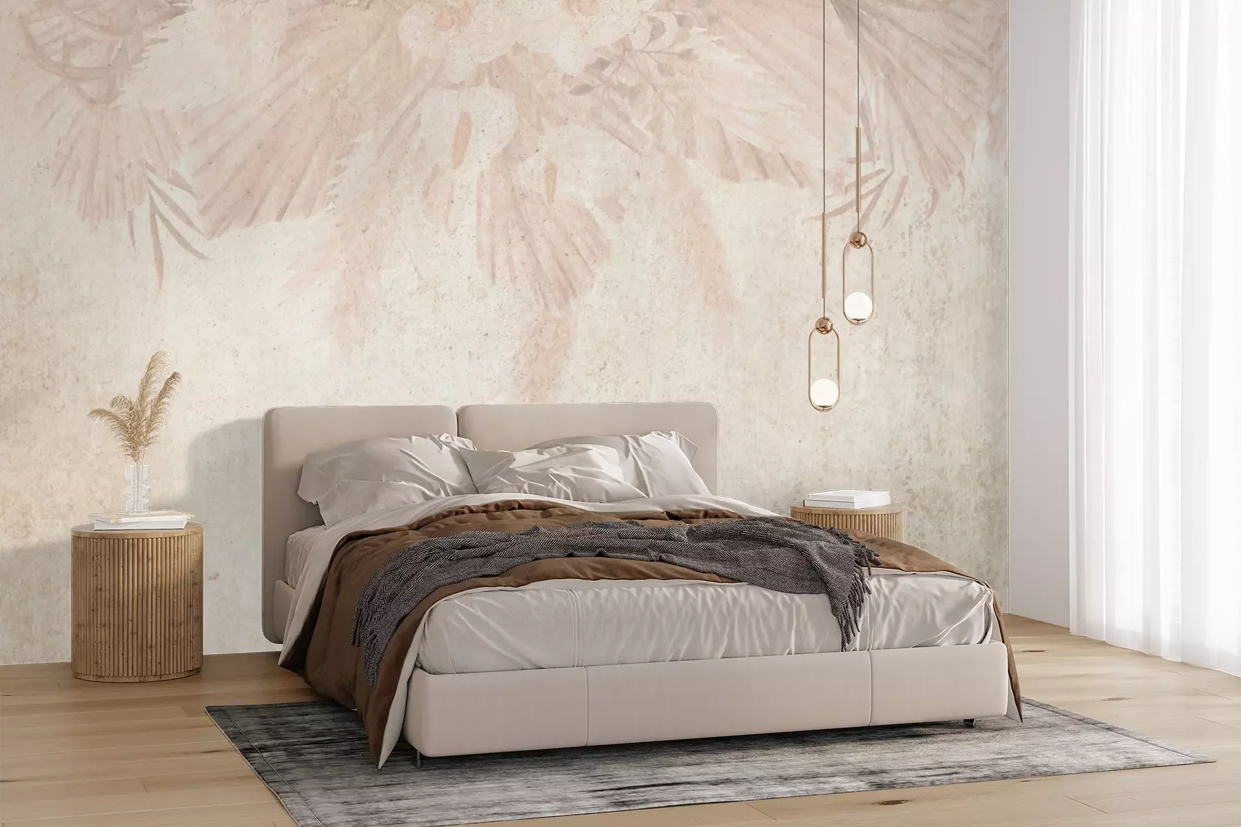 Het materiaal Premium+ is een gestructureerd vinyl op vlies met een gewicht van 255 g/m², dat kleine oneffenheden in de muur effectief camoufleert. De subtiele structuur van fijn zand geeft het oppervlak een exclusieve uitstraling, terwijl de halfmatte afwerking de diepte van de kleuren benadrukt. Het materiaal is dampdoorlatend, waardoor het ook in de keuken en badkamer kan worden gebruikt. De maximale breedte van één baan bedraagt 100 cm – bij grotere afmetingen wordt het fotobehang in meerdere gelijke banen verdeeld. De lijm wordt direct op de muur aangebracht en het behang wordt rand-aan-rand geplakt, wat zorgt voor een esthetisch resultaat zonder zichtbare naden. Het oppervlak kan gemakkelijk worden schoongemaakt door het voorzichtig af te nemen met een vochtige doek.