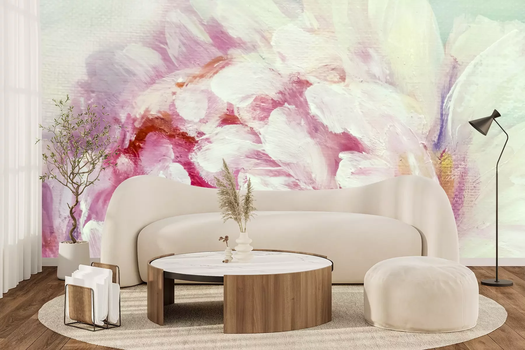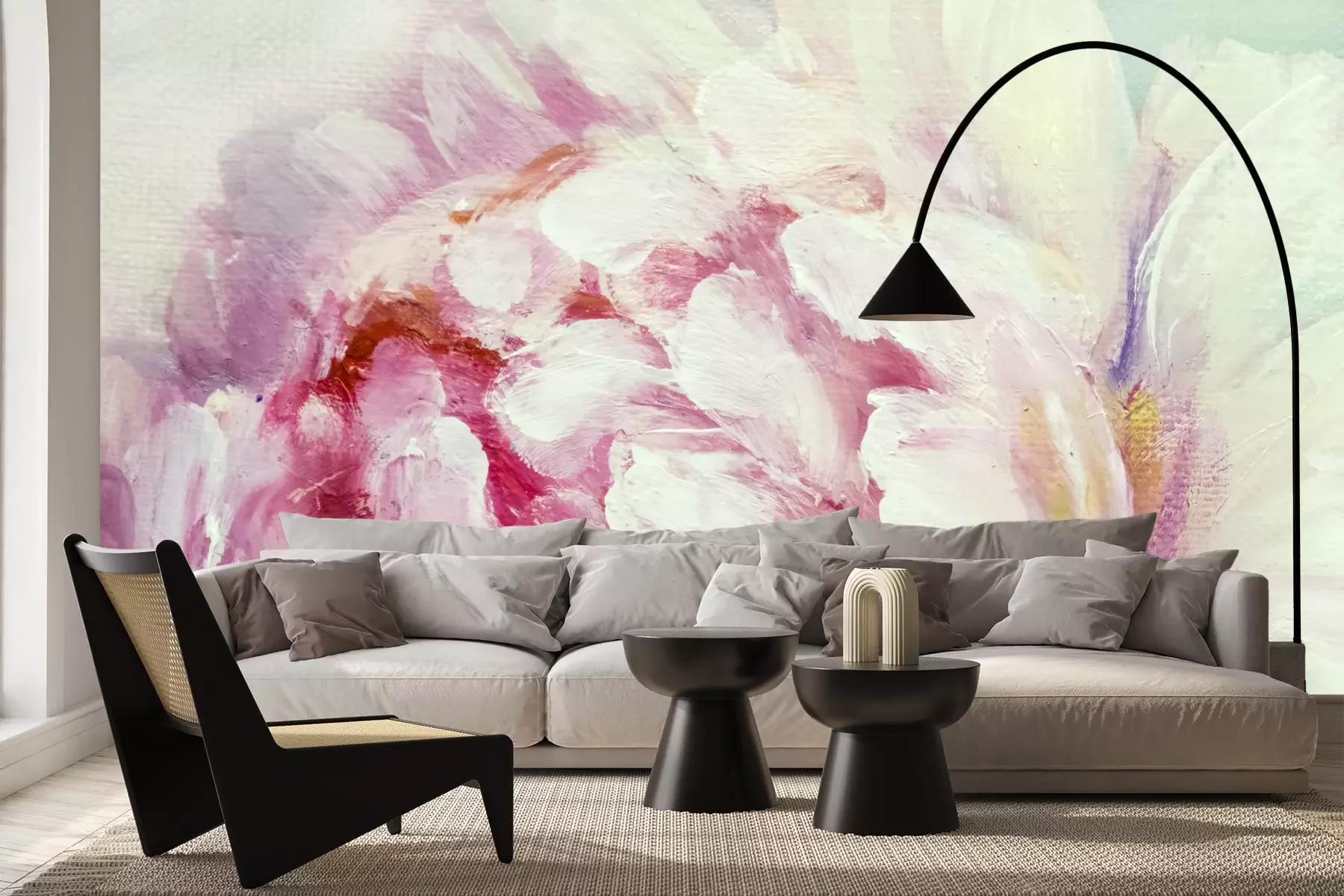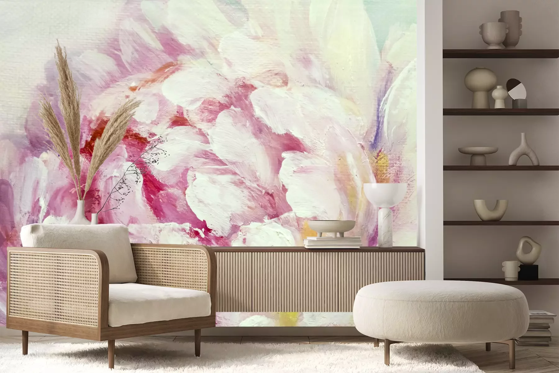 Het materiaal Premium+ is een gestructureerd vinyl op vlies met een gewicht van 255 g/m², dat kleine oneffenheden in de muur effectief camoufleert. De subtiele structuur van fijn zand geeft het oppervlak een exclusieve uitstraling, terwijl de halfmatte afwerking de diepte van de kleuren benadrukt. Het materiaal is dampdoorlatend, waardoor het ook in de keuken en badkamer kan worden gebruikt. De maximale breedte van één baan bedraagt 100 cm – bij grotere afmetingen wordt het fotobehang in meerdere gelijke banen verdeeld. De lijm wordt direct op de muur aangebracht en het behang wordt rand-aan-rand geplakt, wat zorgt voor een esthetisch resultaat zonder zichtbare naden. Het oppervlak kan gemakkelijk worden schoongemaakt door het voorzichtig af te nemen met een vochtige doek.