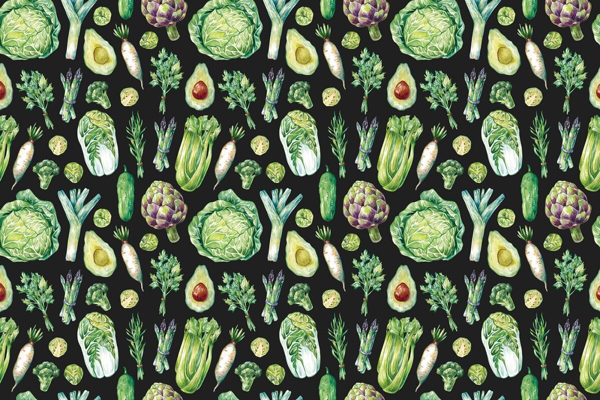 Fotobehang: Een compositie van verse groenten op een donkere achtergrond