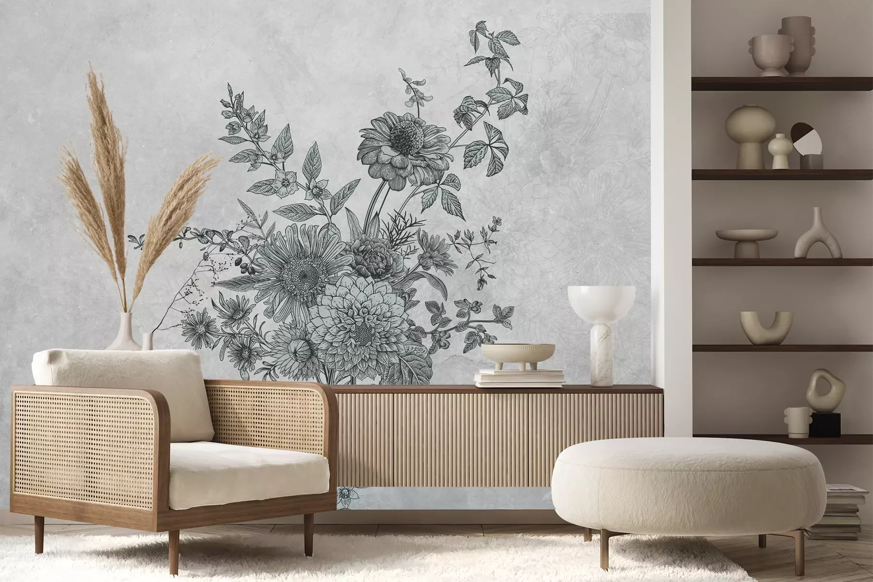 Het materiaal Premium+ is een gestructureerd vinyl op vlies met een gewicht van 255 g/m², dat kleine oneffenheden in de muur effectief camoufleert. De subtiele structuur van fijn zand geeft het oppervlak een exclusieve uitstraling, terwijl de halfmatte afwerking de diepte van de kleuren benadrukt. Het materiaal is dampdoorlatend, waardoor het ook in de keuken en badkamer kan worden gebruikt. De maximale breedte van één baan bedraagt 100 cm – bij grotere afmetingen wordt het fotobehang in meerdere gelijke banen verdeeld. De lijm wordt direct op de muur aangebracht en het behang wordt rand-aan-rand geplakt, wat zorgt voor een esthetisch resultaat zonder zichtbare naden. Het oppervlak kan gemakkelijk worden schoongemaakt door het voorzichtig af te nemen met een vochtige doek.