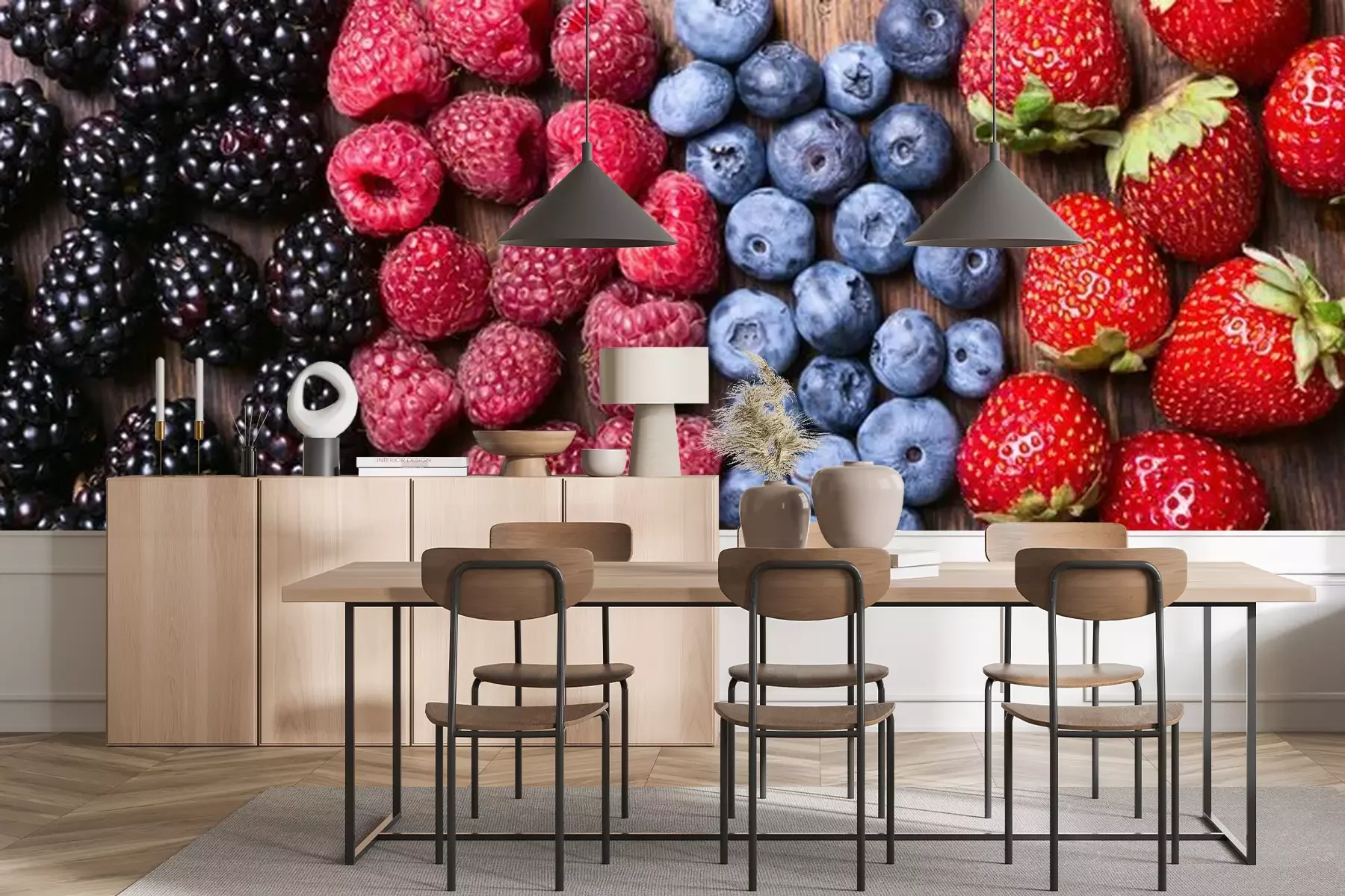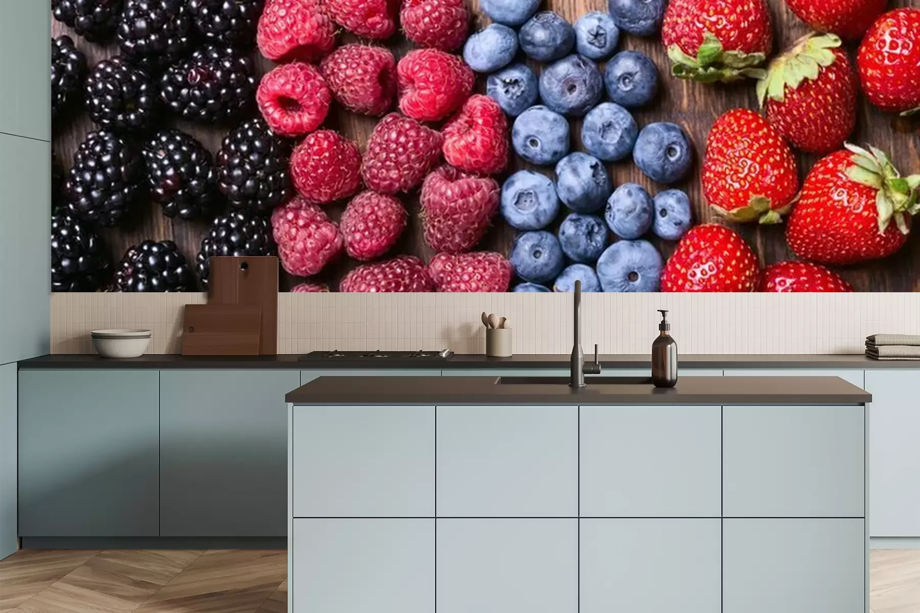 Het materiaal Premium is een glad vinyl op vlies, dat bestand is tegen uitrekken en vervorming. Het is dampdoorlatend – de muren kunnen vrij ademen – waardoor het geschikt is voor gebruik in de keuken en badkamer. Bij vervuiling kan het materiaal worden afgenomen met een vochtige doek. De maximale breedte van één baan bedraagt 95 of 105 cm, afhankelijk van de beschikbaarheid. Montage vindt plaats met de rand-aan-rand methode, wat een esthetisch resultaat zonder zichtbare naden oplevert. Omdat de lijm rechtstreeks op de muur wordt aangebracht, verloopt de installatie van het fotobehang snel en eenvoudig.