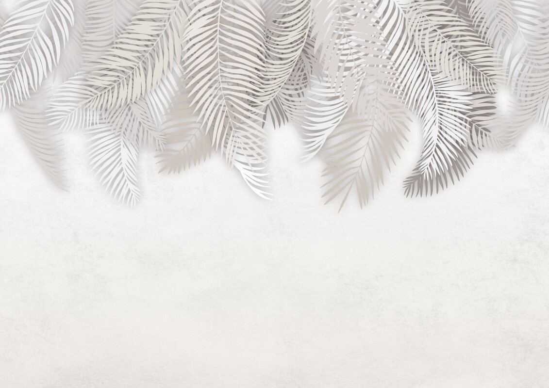 Fotobehang: Een delicaat arrangement met witte palmbladeren die erboven hangen