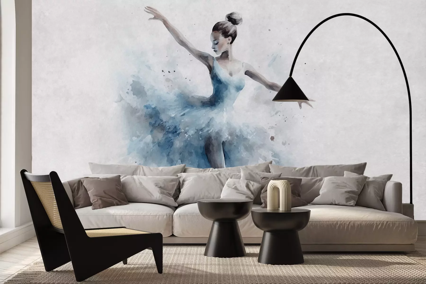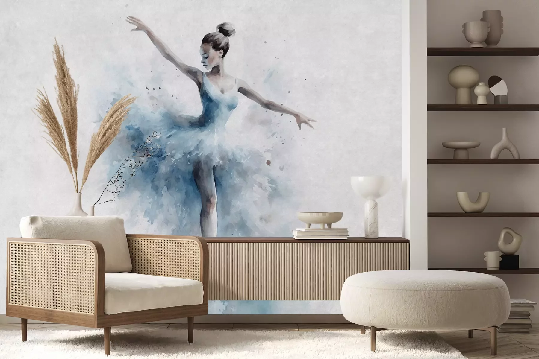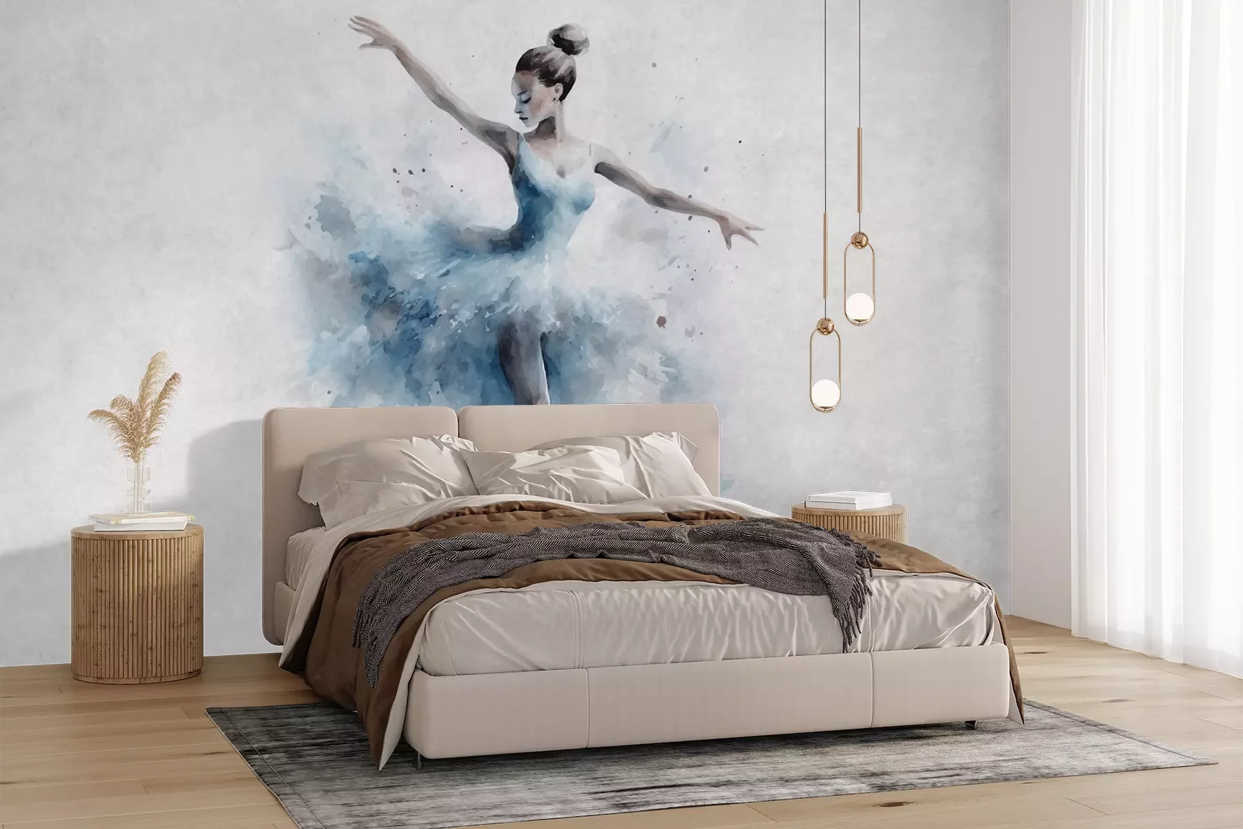 Het materiaal Premium+ is een gestructureerd vinyl op vlies met een gewicht van 255 g/m², dat kleine oneffenheden in de muur effectief camoufleert. De subtiele structuur van fijn zand geeft het oppervlak een exclusieve uitstraling, terwijl de halfmatte afwerking de diepte van de kleuren benadrukt. Het materiaal is dampdoorlatend, waardoor het ook in de keuken en badkamer kan worden gebruikt. De maximale breedte van één baan bedraagt 100 cm – bij grotere afmetingen wordt het fotobehang in meerdere gelijke banen verdeeld. De lijm wordt direct op de muur aangebracht en het behang wordt rand-aan-rand geplakt, wat zorgt voor een esthetisch resultaat zonder zichtbare naden. Het oppervlak kan gemakkelijk worden schoongemaakt door het voorzichtig af te nemen met een vochtige doek.