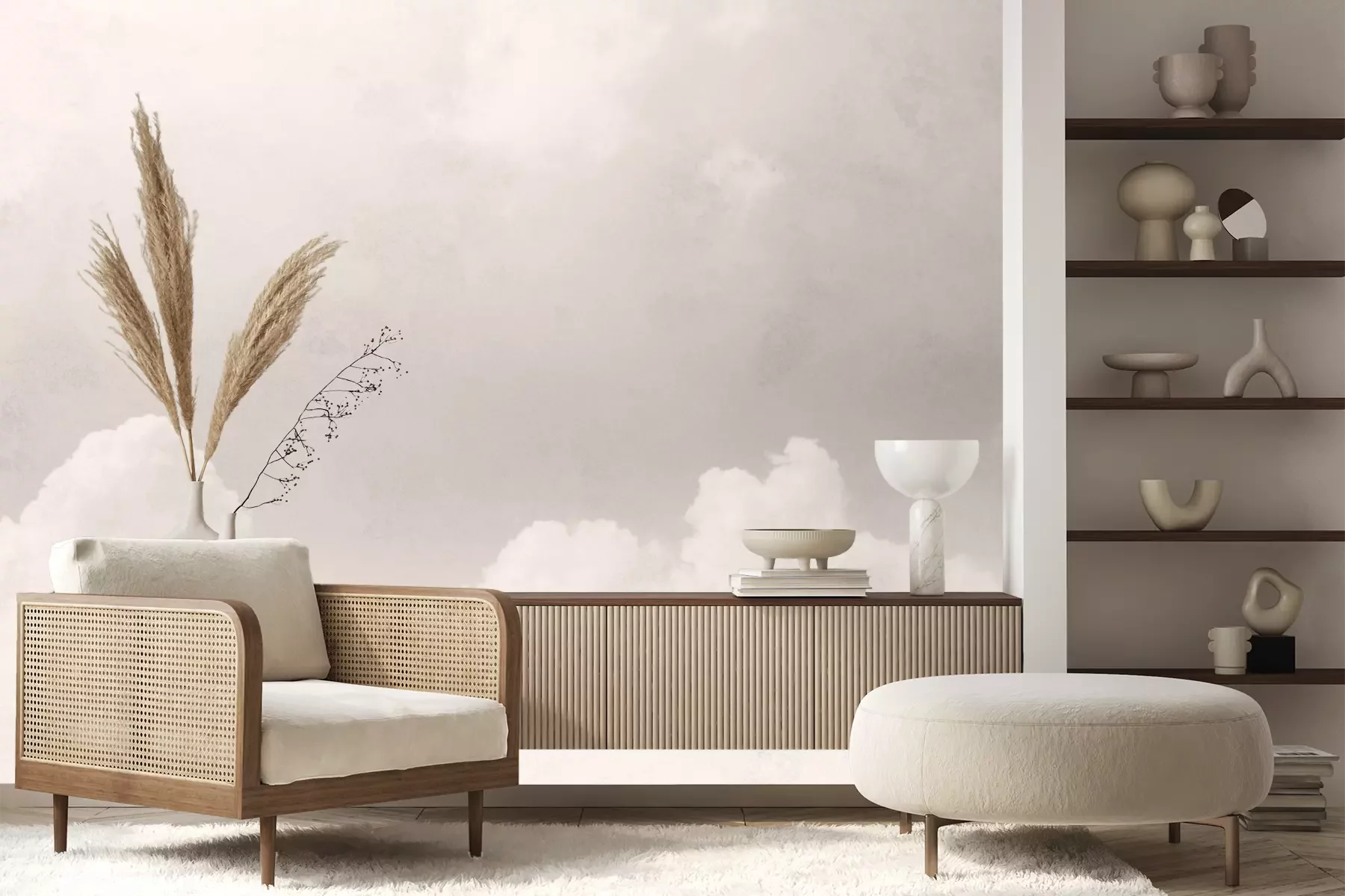 Het materiaal Premium+ is een gestructureerd vinyl op vlies met een gewicht van 255 g/m², dat kleine oneffenheden in de muur effectief camoufleert. De subtiele structuur van fijn zand geeft het oppervlak een exclusieve uitstraling, terwijl de halfmatte afwerking de diepte van de kleuren benadrukt. Het materiaal is dampdoorlatend, waardoor het ook in de keuken en badkamer kan worden gebruikt. De maximale breedte van één baan bedraagt 100 cm – bij grotere afmetingen wordt het fotobehang in meerdere gelijke banen verdeeld. De lijm wordt direct op de muur aangebracht en het behang wordt rand-aan-rand geplakt, wat zorgt voor een esthetisch resultaat zonder zichtbare naden. Het oppervlak kan gemakkelijk worden schoongemaakt door het voorzichtig af te nemen met een vochtige doek.
