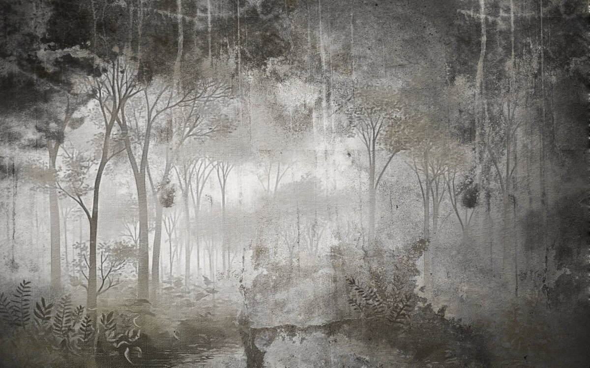 Fotobehang: Een dicht bos met een mysterieuze sfeer