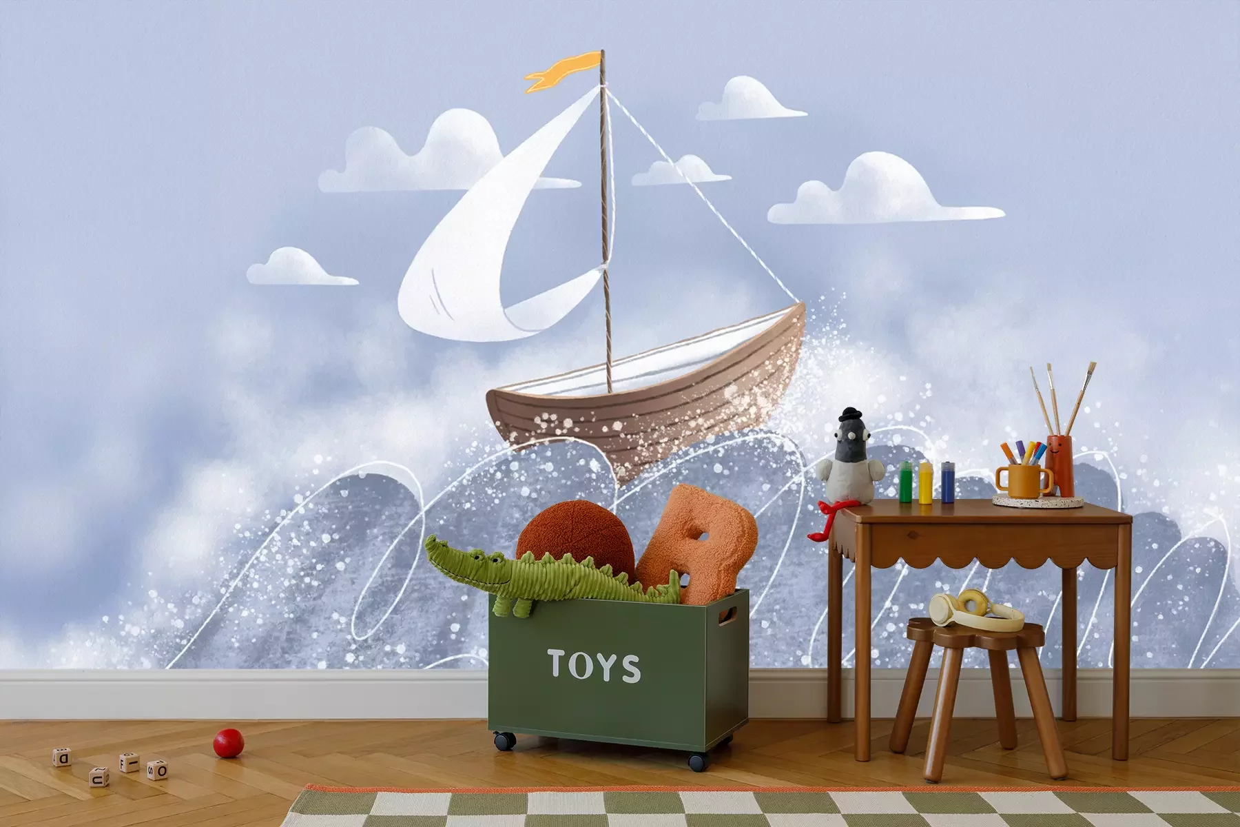 Het materiaal Premium+ is een gestructureerd vinyl op vlies met een gewicht van 255 g/m², dat kleine oneffenheden in de muur effectief camoufleert. De subtiele structuur van fijn zand geeft het oppervlak een exclusieve uitstraling, terwijl de halfmatte afwerking de diepte van de kleuren benadrukt. Het materiaal is dampdoorlatend, waardoor het ook in de keuken en badkamer kan worden gebruikt. De maximale breedte van één baan bedraagt 100 cm – bij grotere afmetingen wordt het fotobehang in meerdere gelijke banen verdeeld. De lijm wordt direct op de muur aangebracht en het behang wordt rand-aan-rand geplakt, wat zorgt voor een esthetisch resultaat zonder zichtbare naden. Het oppervlak kan gemakkelijk worden schoongemaakt door het voorzichtig af te nemen met een vochtige doek.