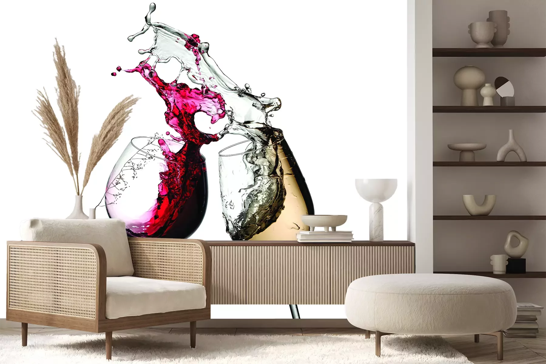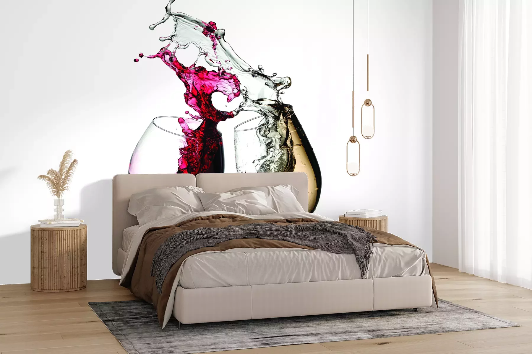 Het materiaal Premium+ is een gestructureerd vinyl op vlies met een gewicht van 255 g/m², dat kleine oneffenheden in de muur effectief camoufleert. De subtiele structuur van fijn zand geeft het oppervlak een exclusieve uitstraling, terwijl de halfmatte afwerking de diepte van de kleuren benadrukt. Het materiaal is dampdoorlatend, waardoor het ook in de keuken en badkamer kan worden gebruikt. De maximale breedte van één baan bedraagt 100 cm – bij grotere afmetingen wordt het fotobehang in meerdere gelijke banen verdeeld. De lijm wordt direct op de muur aangebracht en het behang wordt rand-aan-rand geplakt, wat zorgt voor een esthetisch resultaat zonder zichtbare naden. Het oppervlak kan gemakkelijk worden schoongemaakt door het voorzichtig af te nemen met een vochtige doek.