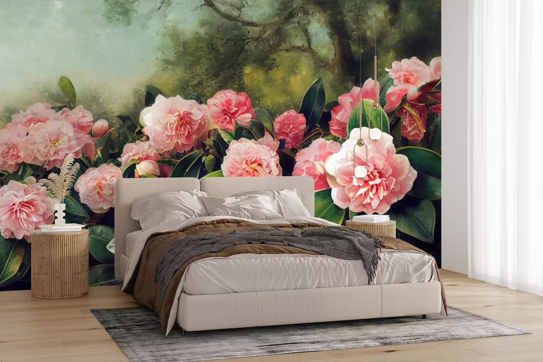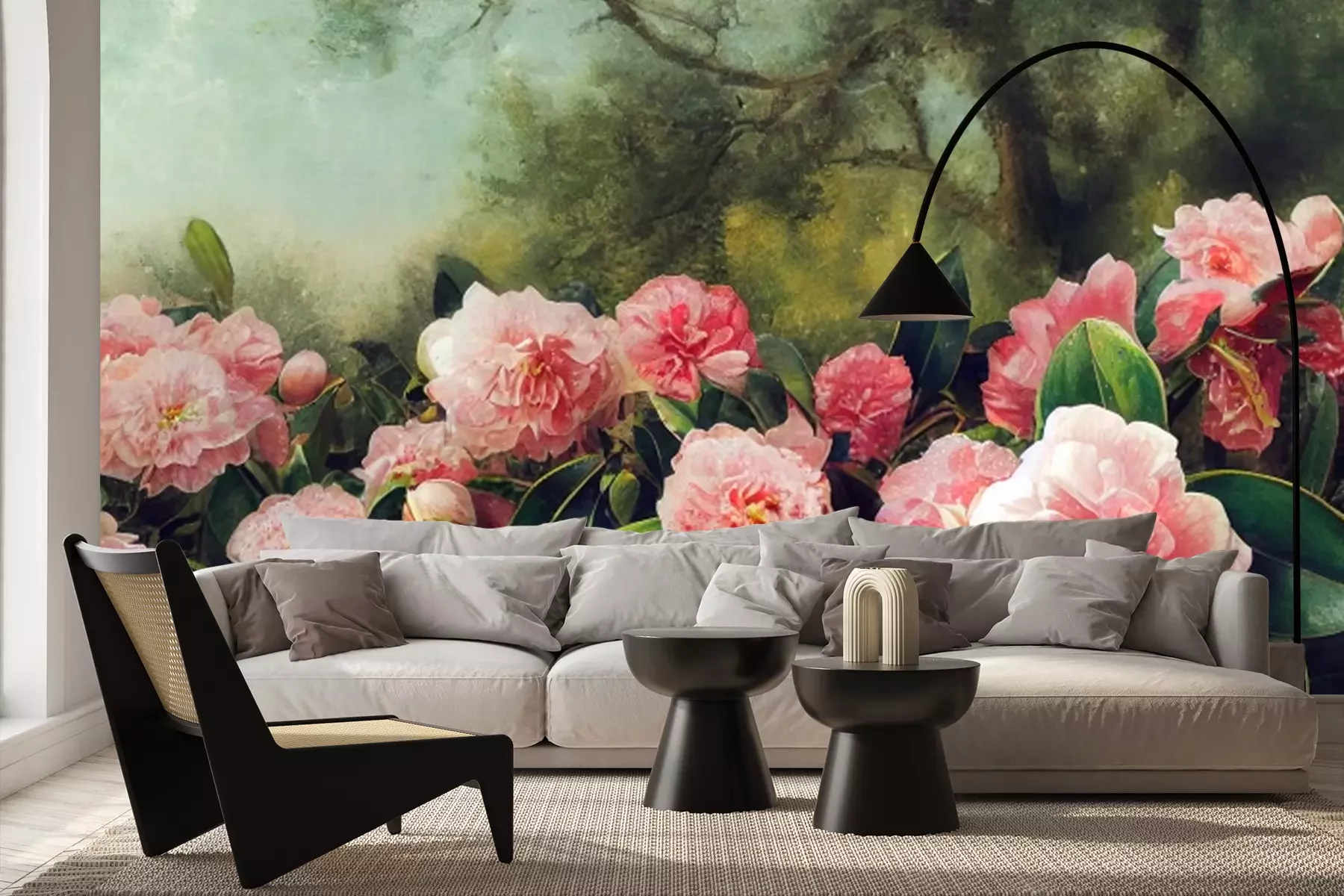 Fotobehang Een geheime tuin met bloeiende bloemen