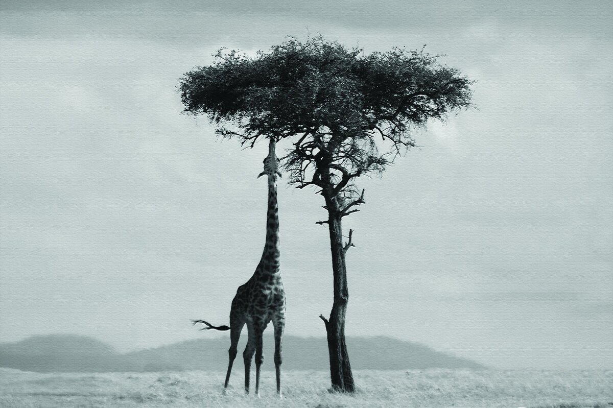 Fotobehang: Een giraffe eet bladeren van een boom in Afrika
