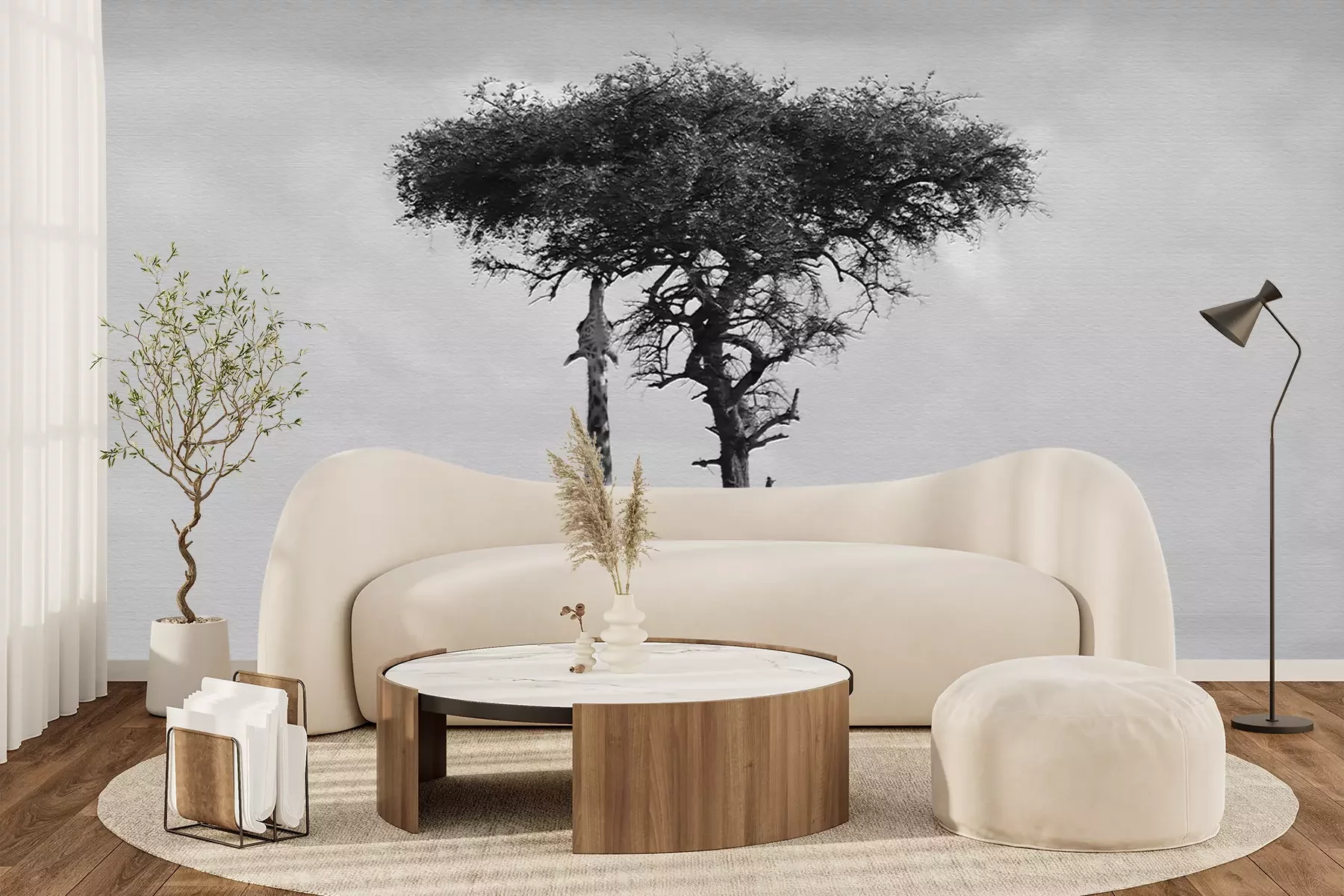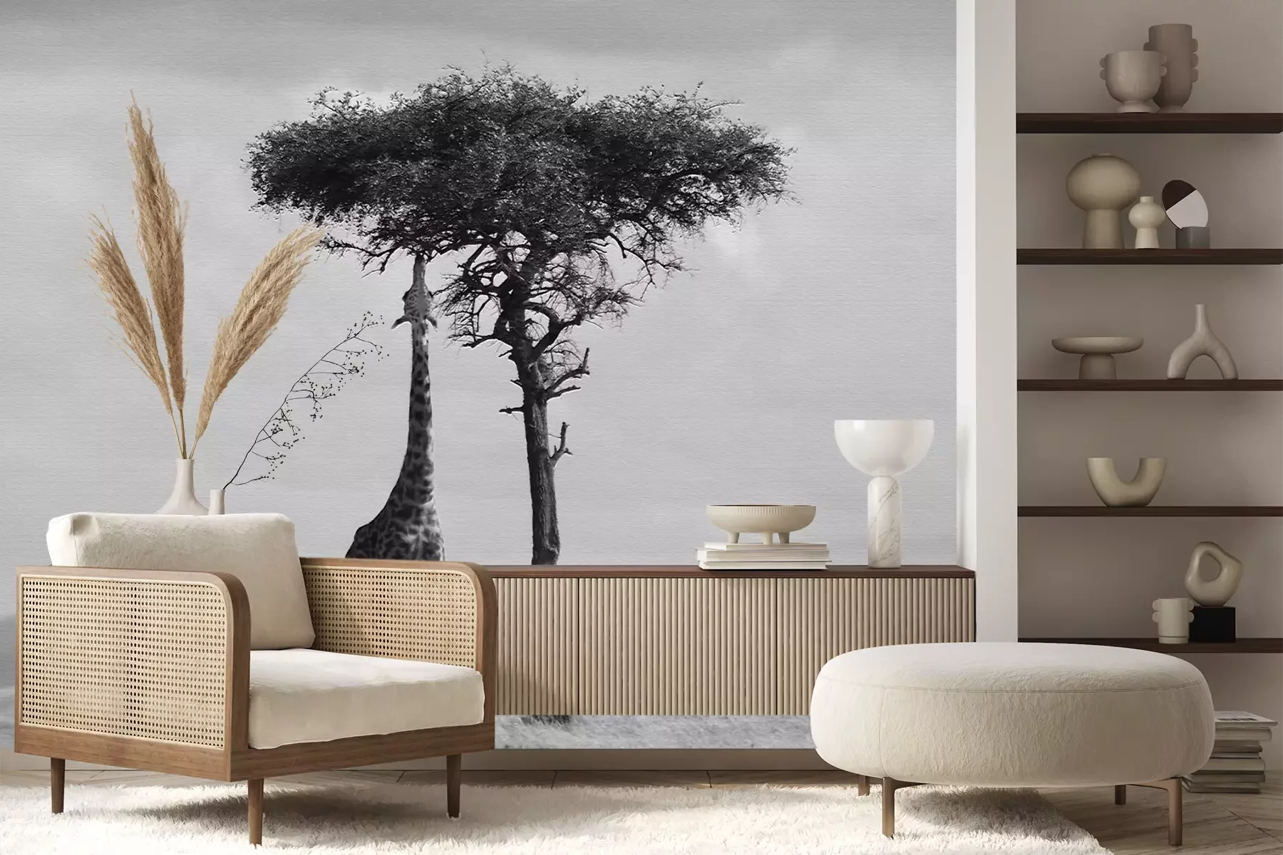 Het materiaal Standard is een hoogwaardig latexmateriaal met een glad, mat oppervlak. Dankzij de HP Latex-printtechnologie zijn de kleuren intens, duurzaam en UV-bestendig, waardoor het patroon jarenlang een onberispelijke uitstraling behoudt. Vervuilde oppervlakken kunnen voorzichtig worden afgeveegd met een droge doek. De maximale breedte van één baan bedraagt 95 cm of 105 cm – afhankelijk van de bestelde fotobehangbreedte. Bij grotere afmetingen wordt het patroon verdeeld over meerdere gelijkmatige banen. Het fotobehang wordt rand-aan-randaangebracht, wat vrijwel onzichtbare naden mogelijk maakt.