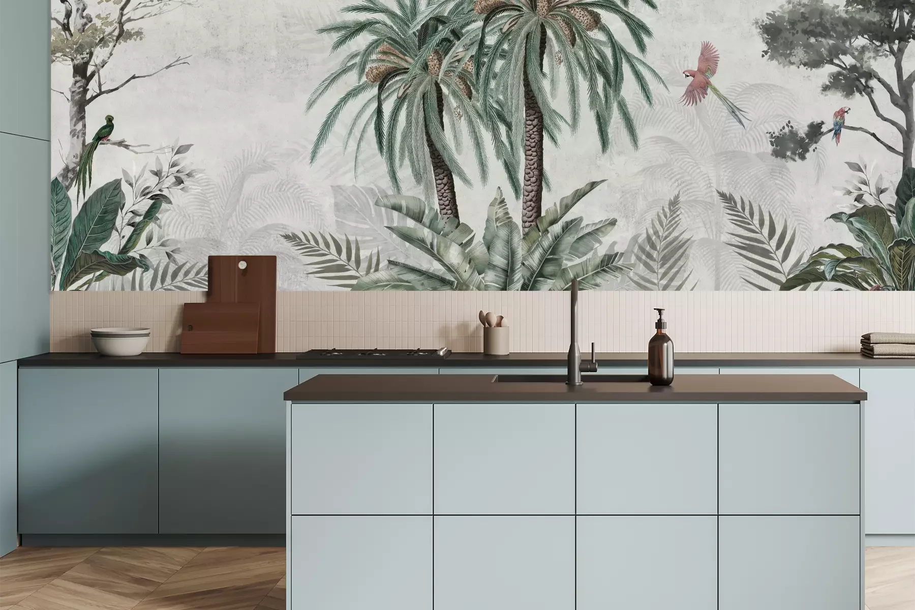 Het materiaal Premium is een glad vinyl op vlies, dat bestand is tegen uitrekken en vervorming. Het is dampdoorlatend – de muren kunnen vrij ademen – waardoor het geschikt is voor gebruik in de keuken en badkamer. Bij vervuiling kan het materiaal worden afgenomen met een vochtige doek. De maximale breedte van één baan bedraagt 95 of 105 cm, afhankelijk van de beschikbaarheid. Montage vindt plaats met de rand-aan-rand methode, wat een esthetisch resultaat zonder zichtbare naden oplevert. Omdat de lijm rechtstreeks op de muur wordt aangebracht, verloopt de installatie van het fotobehang snel en eenvoudig.
