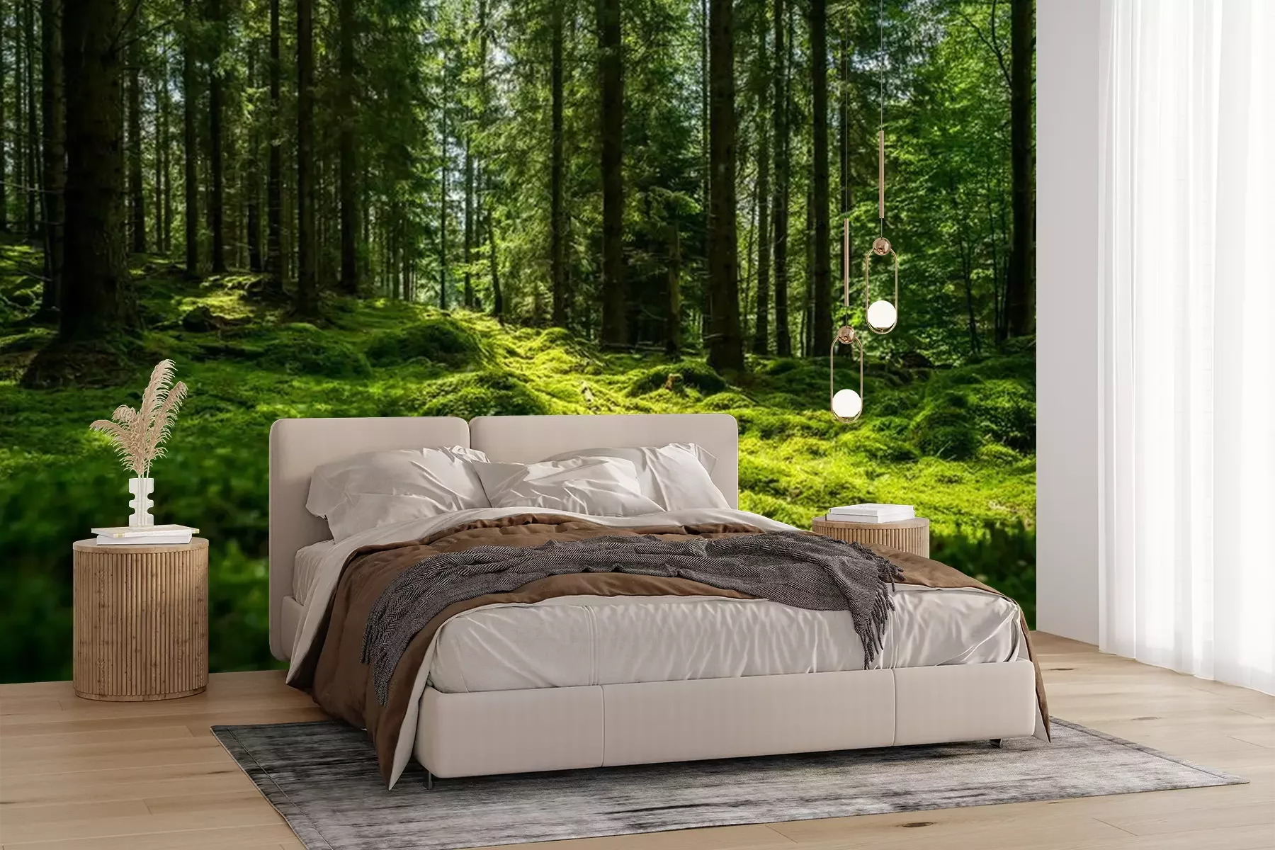 Het materiaal Premium+ is een gestructureerd vinyl op vlies met een gewicht van 255 g/m², dat kleine oneffenheden in de muur effectief camoufleert. De subtiele structuur van fijn zand geeft het oppervlak een exclusieve uitstraling, terwijl de halfmatte afwerking de diepte van de kleuren benadrukt. Het materiaal is dampdoorlatend, waardoor het ook in de keuken en badkamer kan worden gebruikt. De maximale breedte van één baan bedraagt 100 cm – bij grotere afmetingen wordt het fotobehang in meerdere gelijke banen verdeeld. De lijm wordt direct op de muur aangebracht en het behang wordt rand-aan-rand geplakt, wat zorgt voor een esthetisch resultaat zonder zichtbare naden. Het oppervlak kan gemakkelijk worden schoongemaakt door het voorzichtig af te nemen met een vochtige doek.