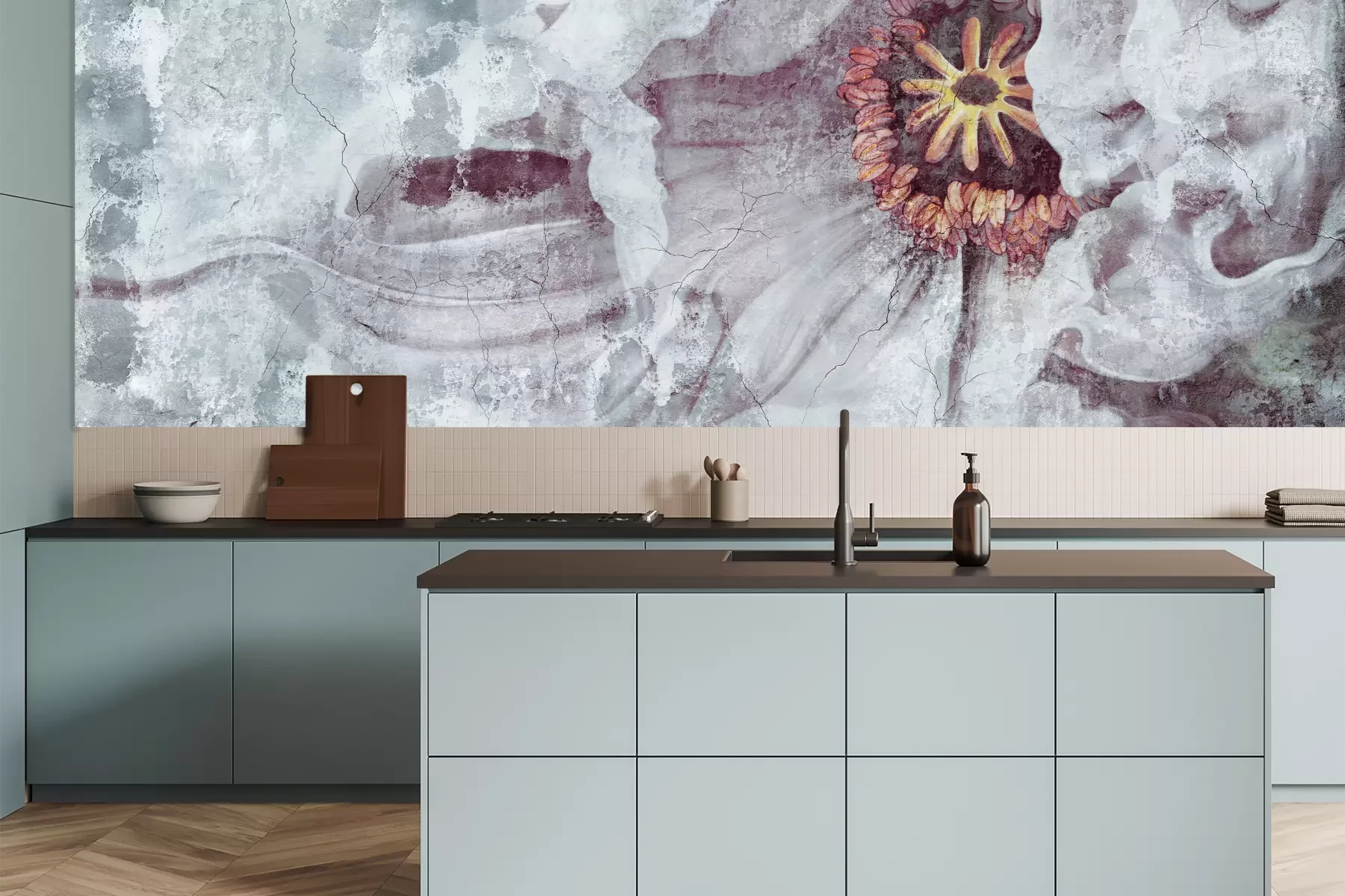 Het materiaal Premium is een glad vinyl op vlies, dat bestand is tegen uitrekken en vervorming. Het is dampdoorlatend – de muren kunnen vrij ademen – waardoor het geschikt is voor gebruik in de keuken en badkamer. Bij vervuiling kan het materiaal worden afgenomen met een vochtige doek. De maximale breedte van één baan bedraagt 95 of 105 cm, afhankelijk van de beschikbaarheid. Montage vindt plaats met de rand-aan-rand methode, wat een esthetisch resultaat zonder zichtbare naden oplevert. Omdat de lijm rechtstreeks op de muur wordt aangebracht, verloopt de installatie van het fotobehang snel en eenvoudig.