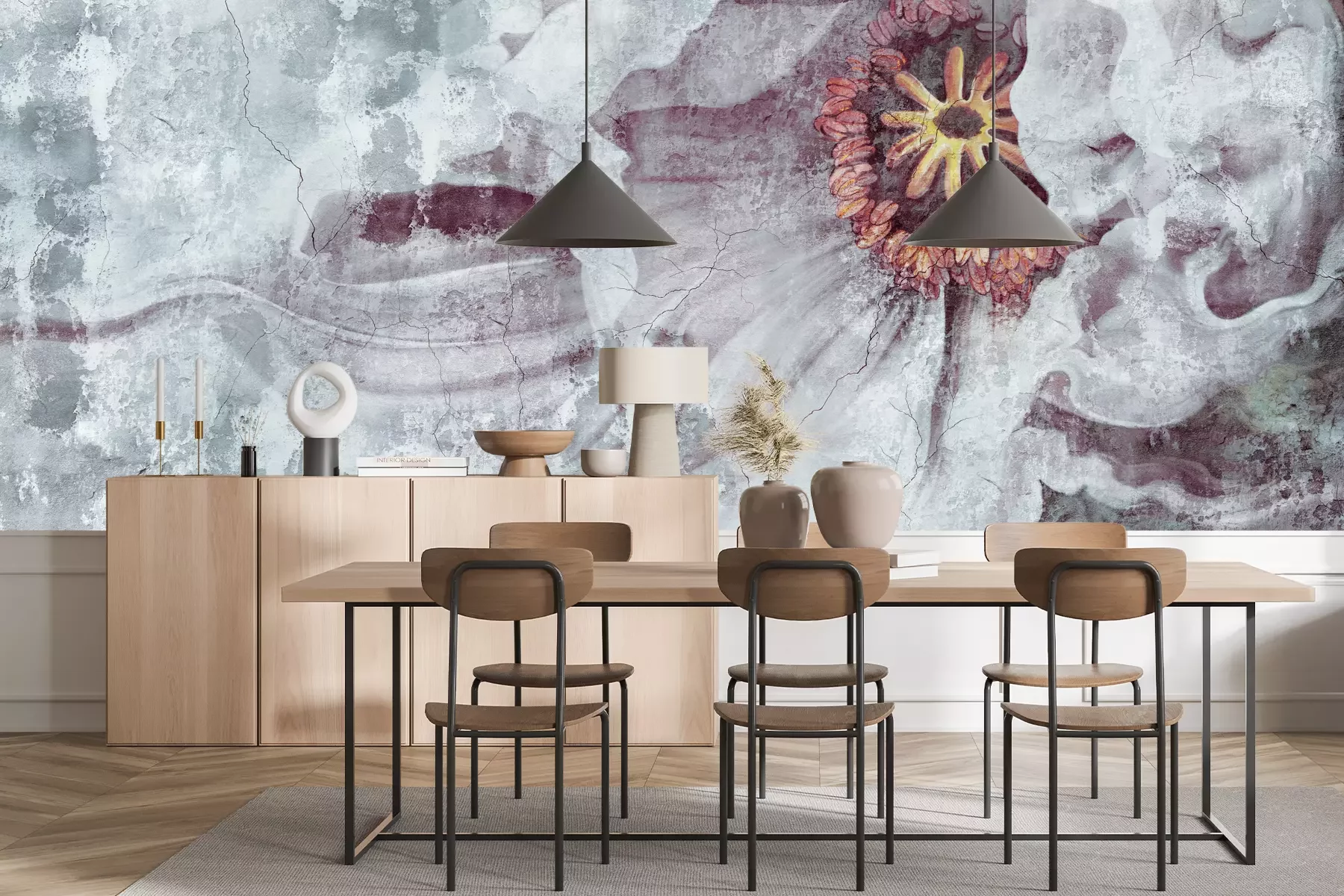 Het materiaal Premium+ is een gestructureerd vinyl op vlies met een gewicht van 255 g/m², dat kleine oneffenheden in de muur effectief camoufleert. De subtiele structuur van fijn zand geeft het oppervlak een exclusieve uitstraling, terwijl de halfmatte afwerking de diepte van de kleuren benadrukt. Het materiaal is dampdoorlatend, waardoor het ook in de keuken en badkamer kan worden gebruikt. De maximale breedte van één baan bedraagt 100 cm – bij grotere afmetingen wordt het fotobehang in meerdere gelijke banen verdeeld. De lijm wordt direct op de muur aangebracht en het behang wordt rand-aan-rand geplakt, wat zorgt voor een esthetisch resultaat zonder zichtbare naden. Het oppervlak kan gemakkelijk worden schoongemaakt door het voorzichtig af te nemen met een vochtige doek.