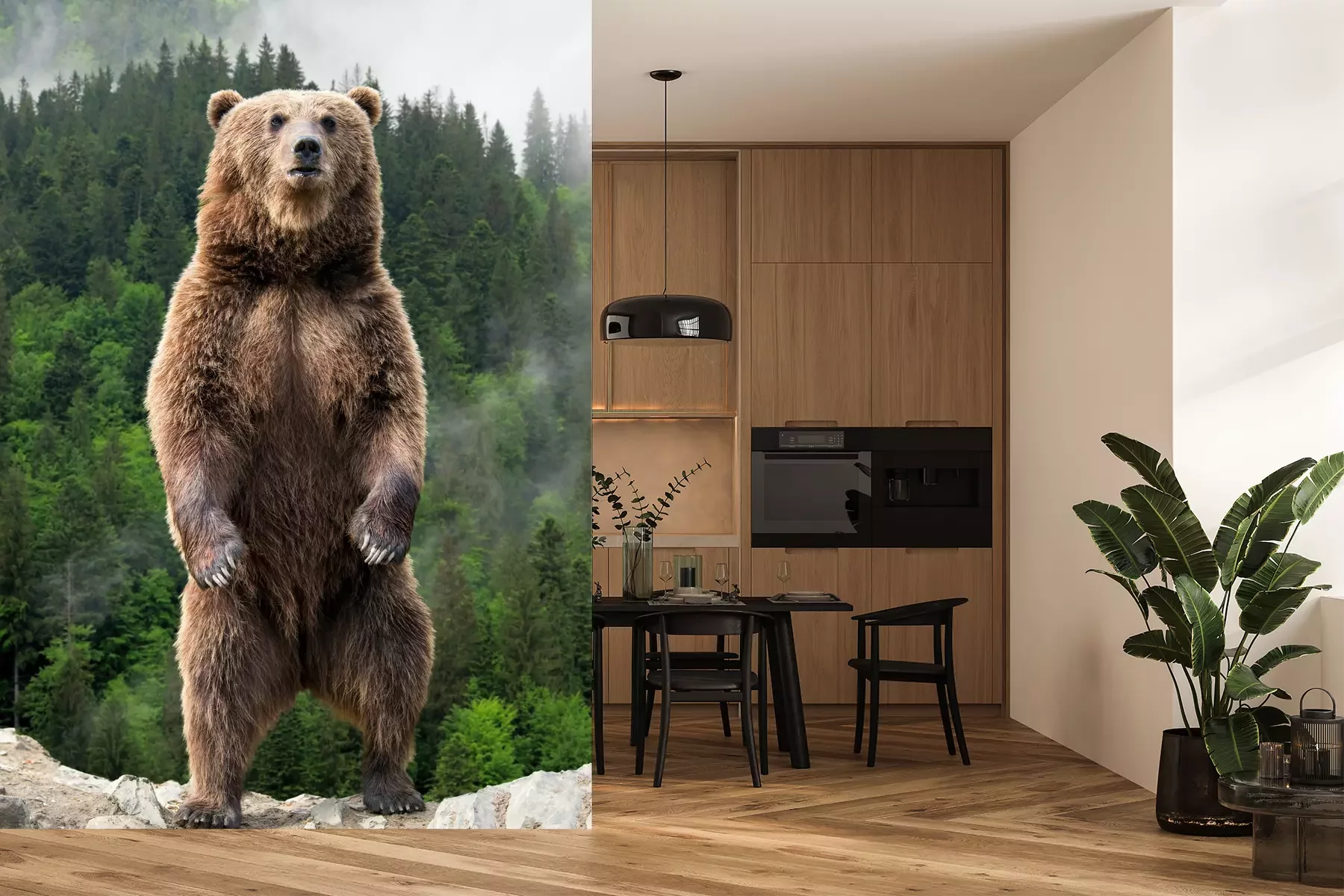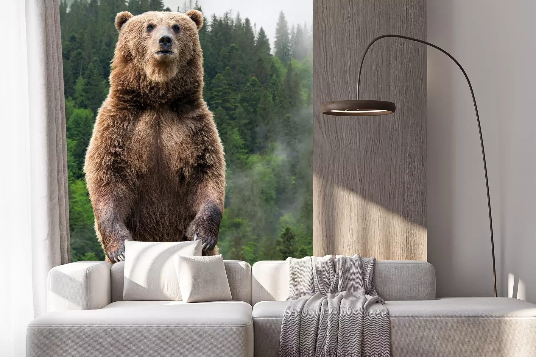 Bruine beer in een mistig bosProbleemloze bezorging verzorgd door vertrouwde vervoerders