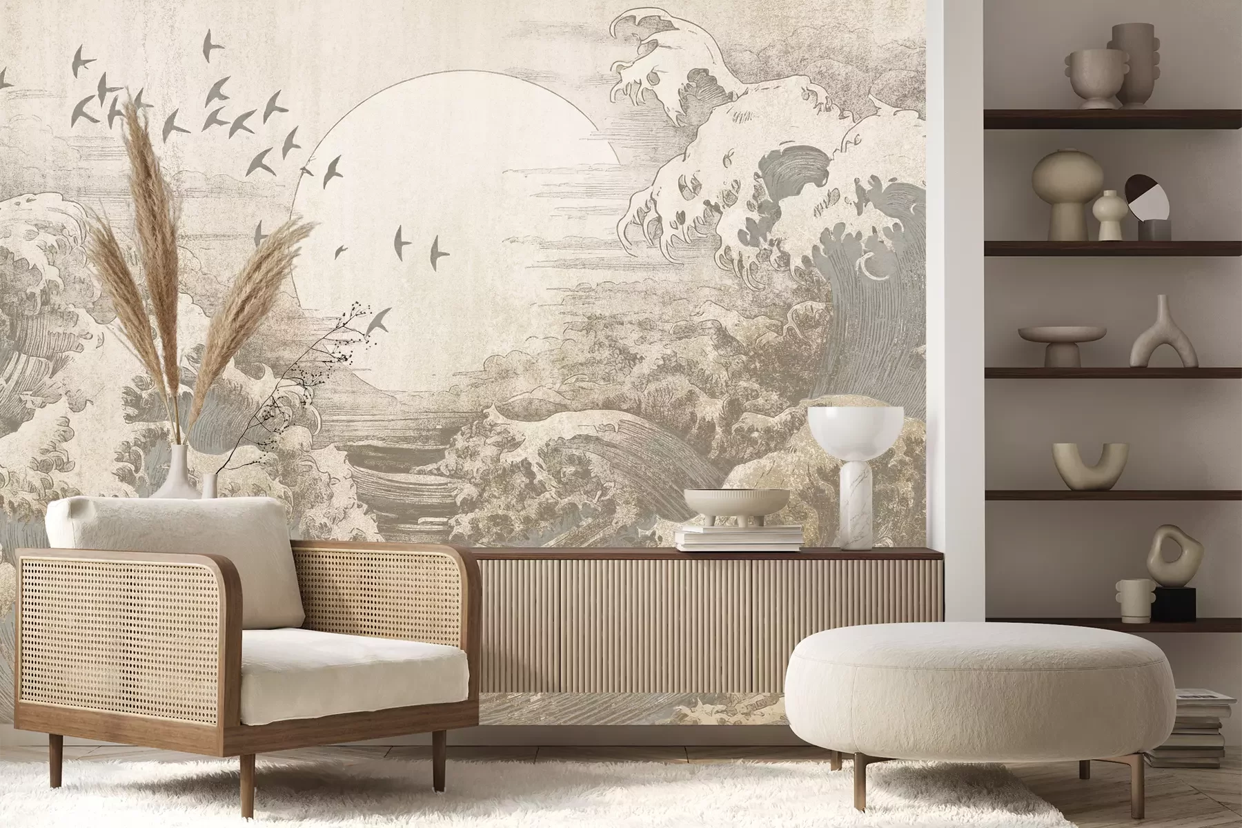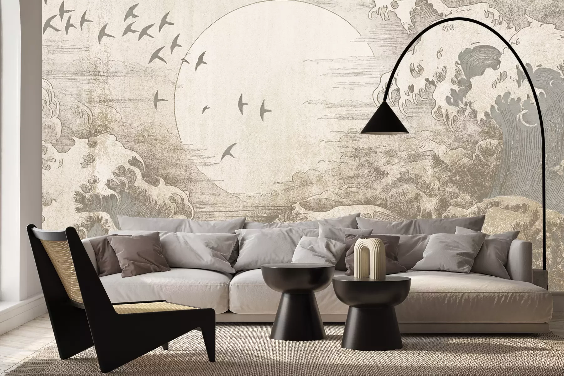 Het materiaal Premium+ is een gestructureerd vinyl op vlies met een gewicht van 255 g/m², dat kleine oneffenheden in de muur effectief camoufleert. De subtiele structuur van fijn zand geeft het oppervlak een exclusieve uitstraling, terwijl de halfmatte afwerking de diepte van de kleuren benadrukt. Het materiaal is dampdoorlatend, waardoor het ook in de keuken en badkamer kan worden gebruikt. De maximale breedte van één baan bedraagt 100 cm – bij grotere afmetingen wordt het fotobehang in meerdere gelijke banen verdeeld. De lijm wordt direct op de muur aangebracht en het behang wordt rand-aan-rand geplakt, wat zorgt voor een esthetisch resultaat zonder zichtbare naden. Het oppervlak kan gemakkelijk worden schoongemaakt door het voorzichtig af te nemen met een vochtige doek.