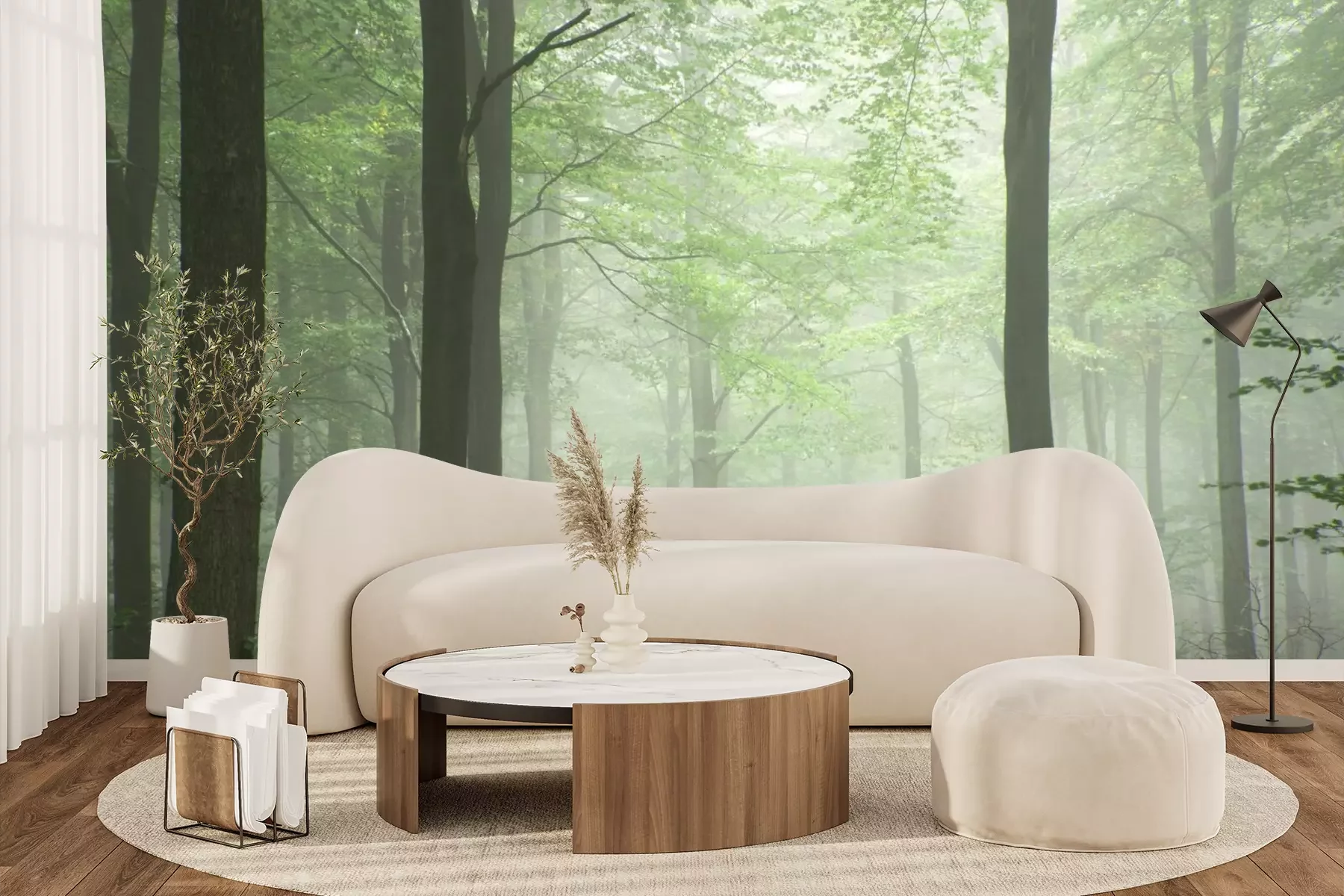 Het materiaal Premium+ is een gestructureerd vinyl op vlies met een gewicht van 255 g/m², dat kleine oneffenheden in de muur effectief camoufleert. De subtiele structuur van fijn zand geeft het oppervlak een exclusieve uitstraling, terwijl de halfmatte afwerking de diepte van de kleuren benadrukt. Het materiaal is dampdoorlatend, waardoor het ook in de keuken en badkamer kan worden gebruikt. De maximale breedte van één baan bedraagt 100 cm – bij grotere afmetingen wordt het fotobehang in meerdere gelijke banen verdeeld. De lijm wordt direct op de muur aangebracht en het behang wordt rand-aan-rand geplakt, wat zorgt voor een esthetisch resultaat zonder zichtbare naden. Het oppervlak kan gemakkelijk worden schoongemaakt door het voorzichtig af te nemen met een vochtige doek.