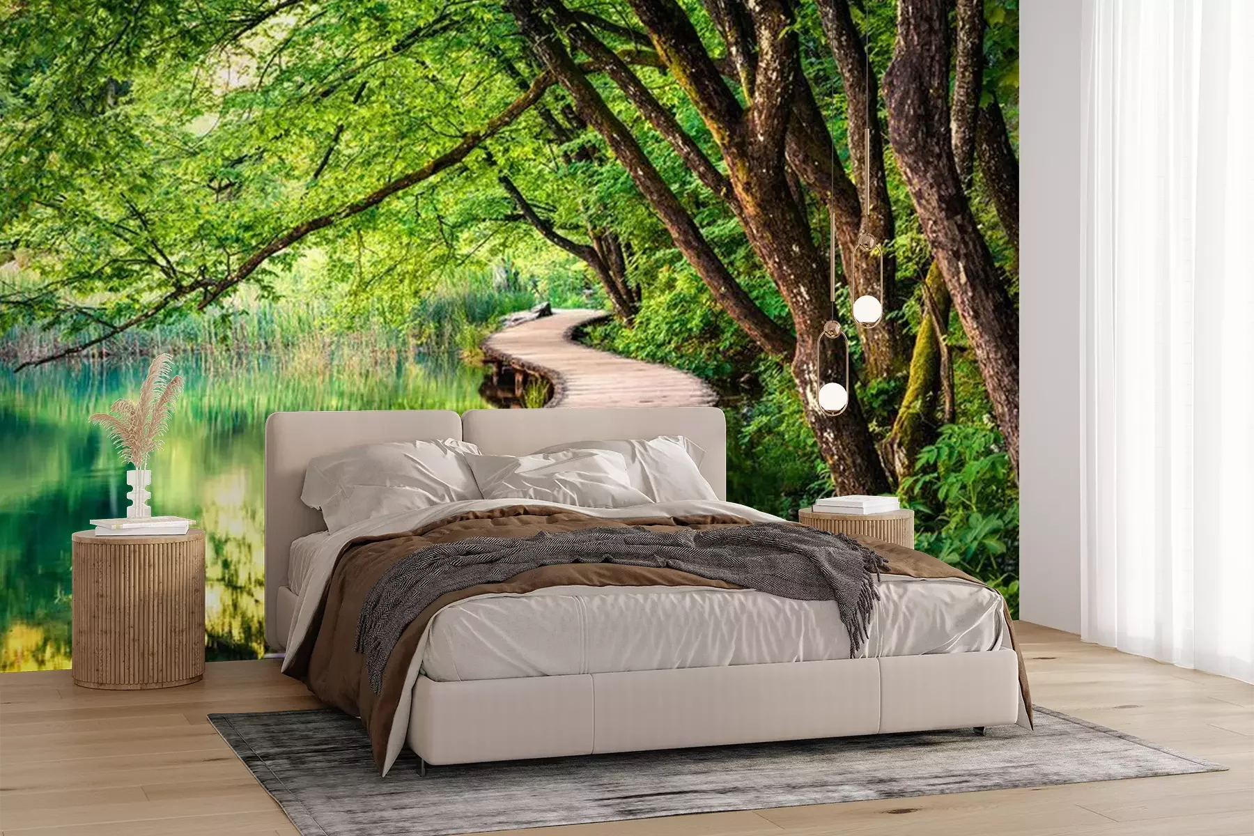 Het materiaal Premium+ is een gestructureerd vinyl op vlies met een gewicht van 255 g/m², dat kleine oneffenheden in de muur effectief camoufleert. De subtiele structuur van fijn zand geeft het oppervlak een exclusieve uitstraling, terwijl de halfmatte afwerking de diepte van de kleuren benadrukt. Het materiaal is dampdoorlatend, waardoor het ook in de keuken en badkamer kan worden gebruikt. De maximale breedte van één baan bedraagt 100 cm – bij grotere afmetingen wordt het fotobehang in meerdere gelijke banen verdeeld. De lijm wordt direct op de muur aangebracht en het behang wordt rand-aan-rand geplakt, wat zorgt voor een esthetisch resultaat zonder zichtbare naden. Het oppervlak kan gemakkelijk worden schoongemaakt door het voorzichtig af te nemen met een vochtige doek.