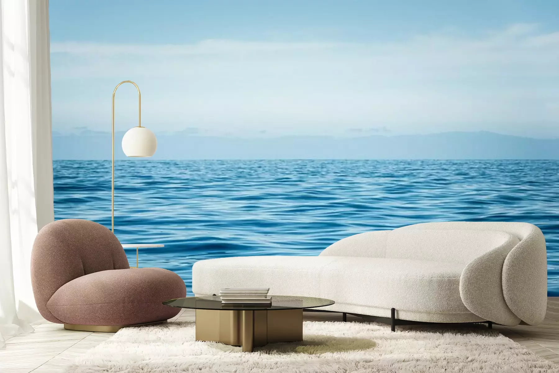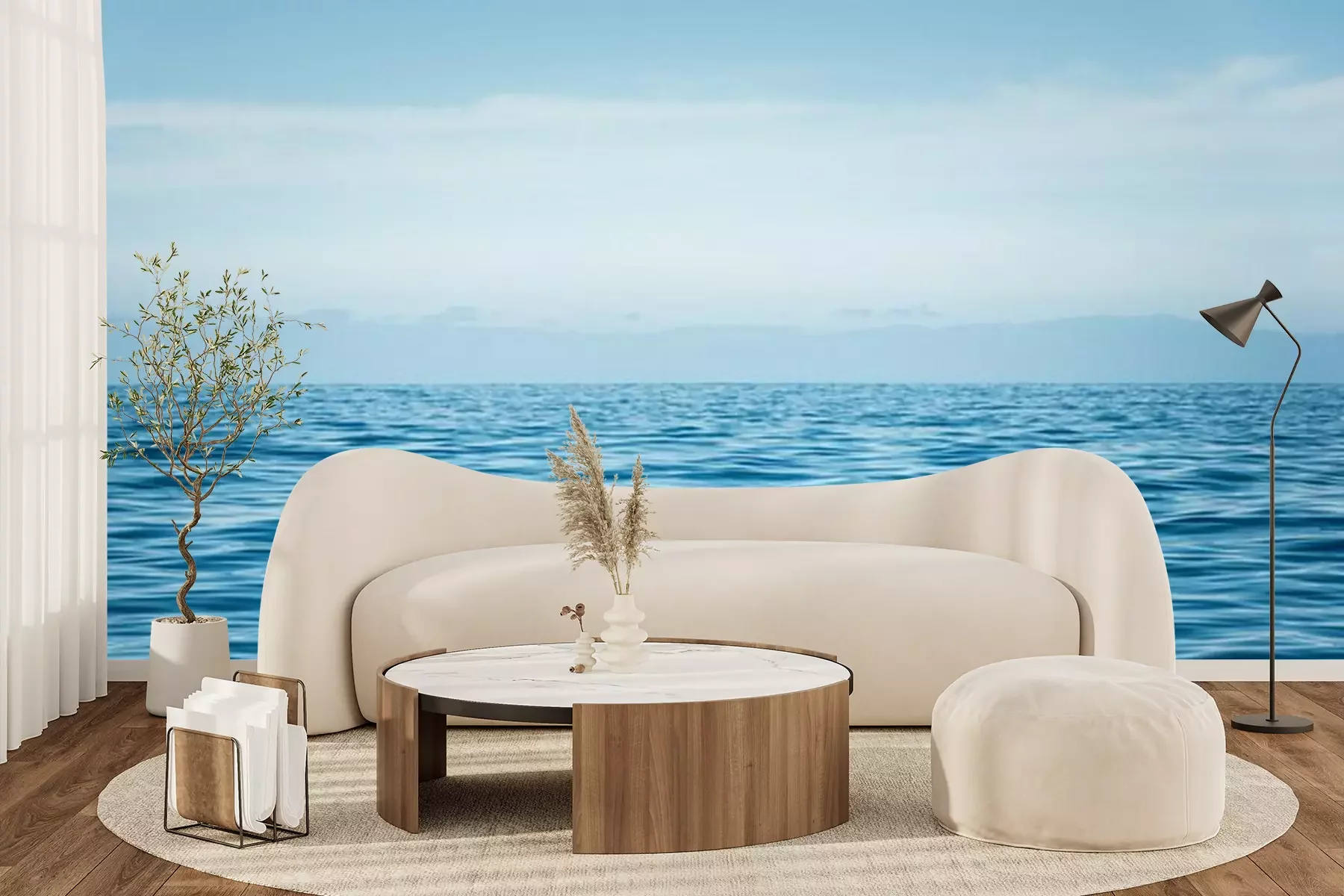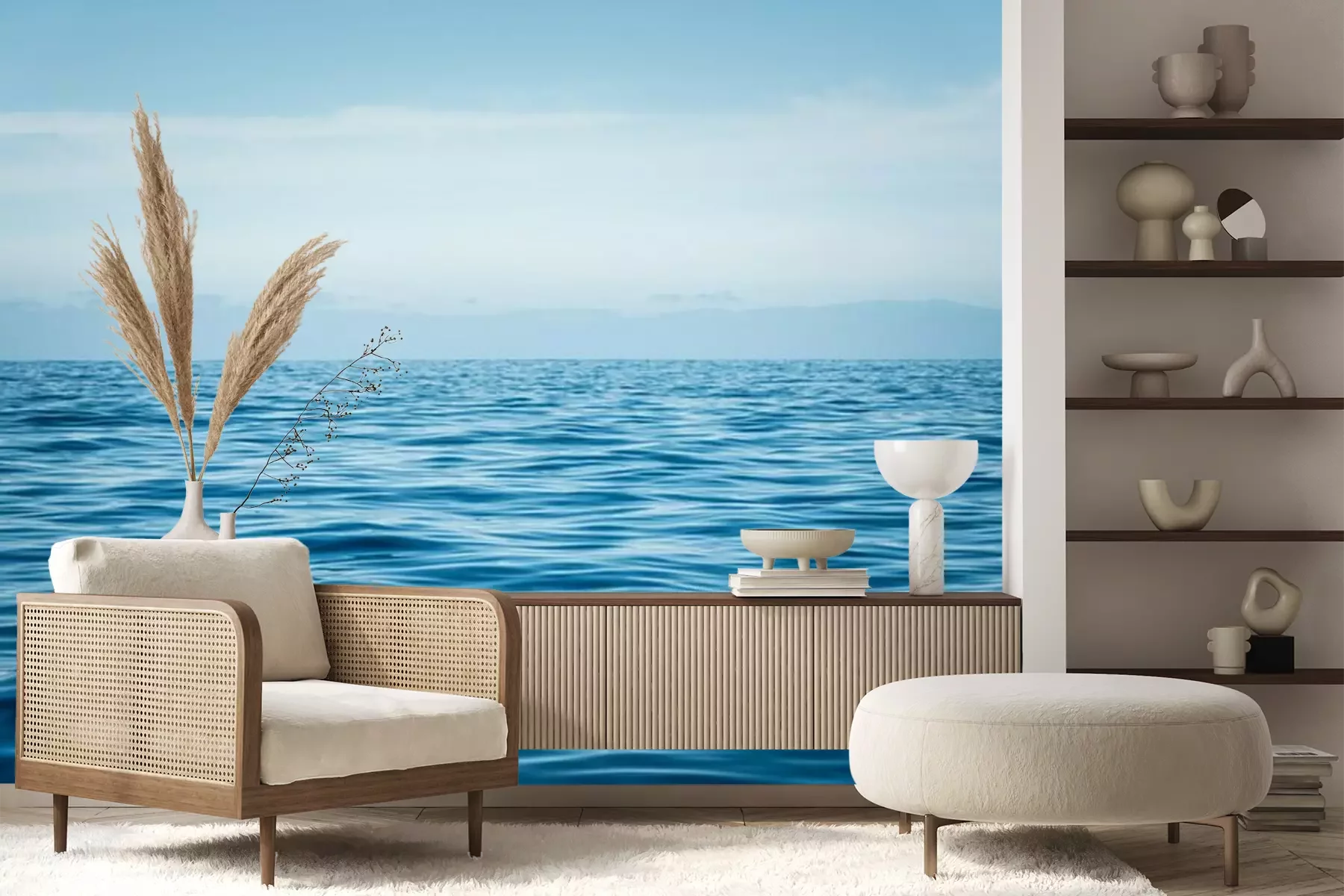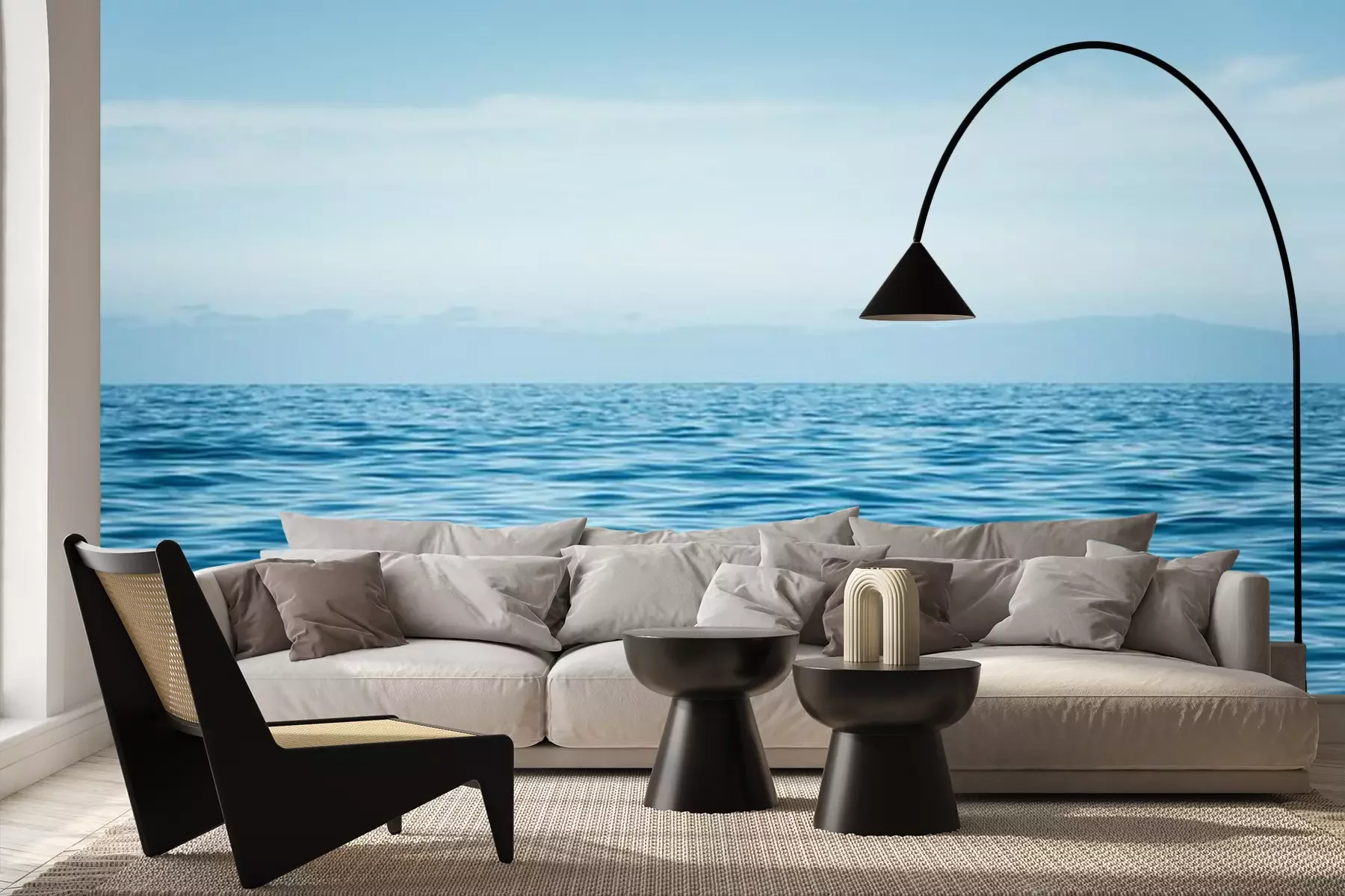 Fotobehang Een kalme oceaan tegen een blauwe lucht