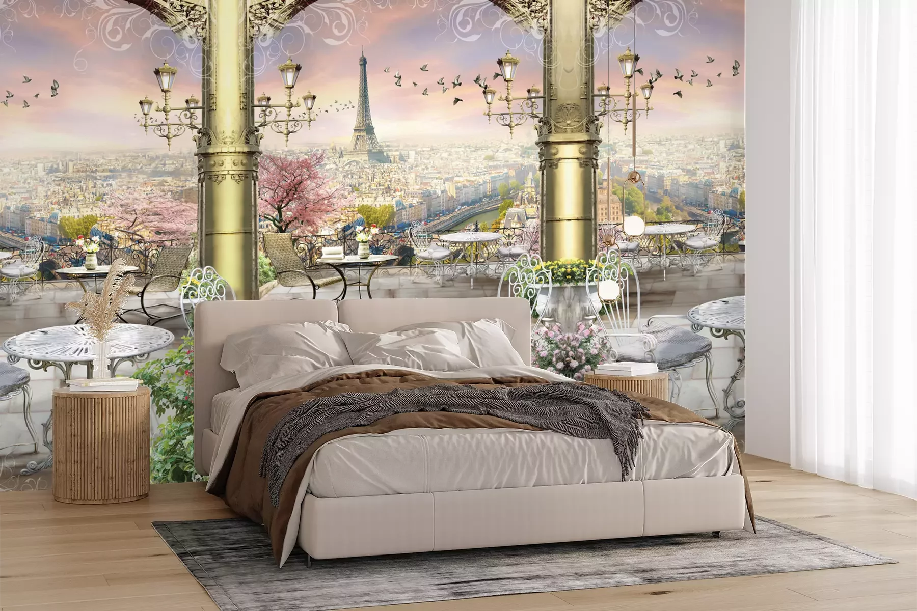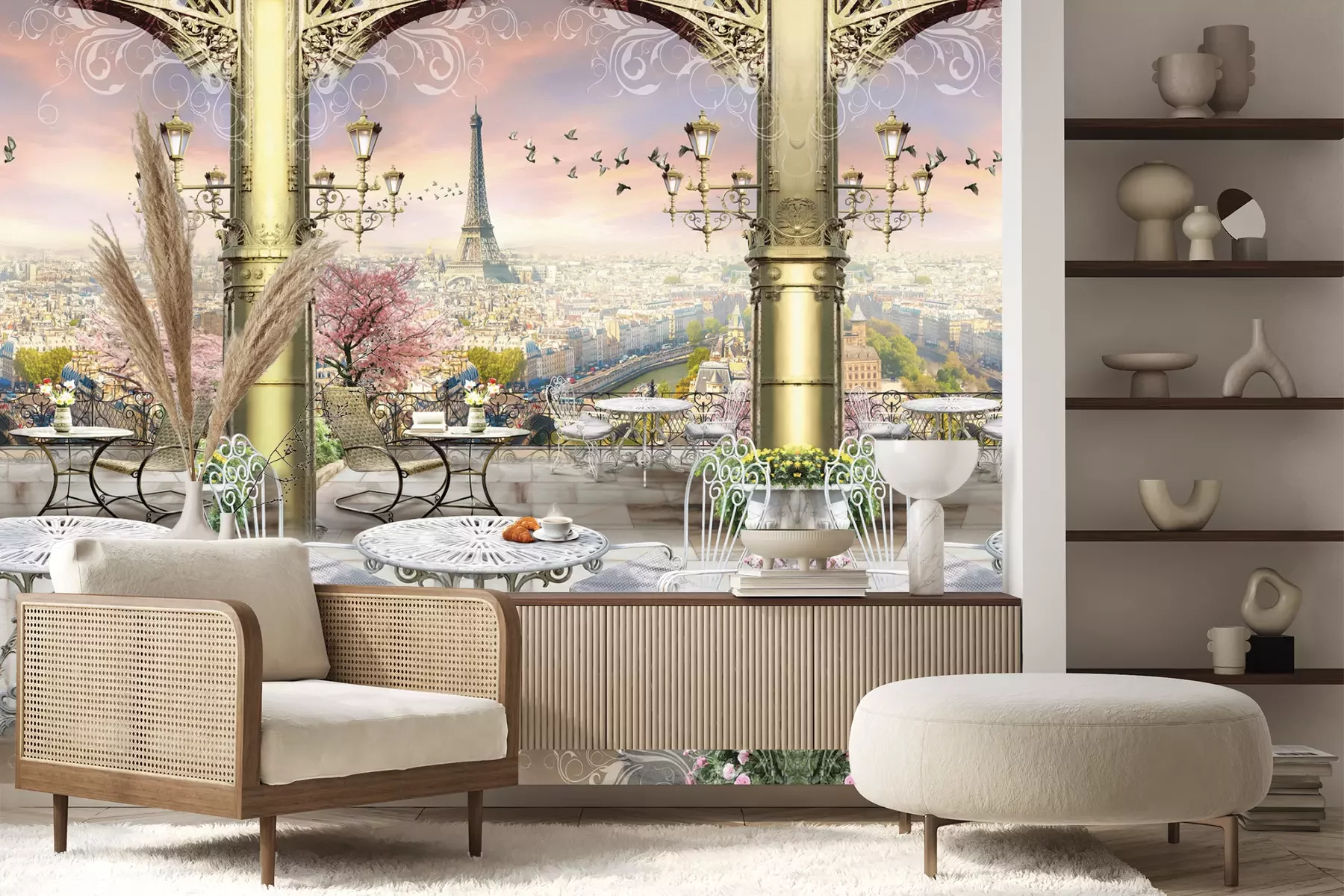 Het materiaal Premium+ is een gestructureerd vinyl op vlies met een gewicht van 255 g/m², dat kleine oneffenheden in de muur effectief camoufleert. De subtiele structuur van fijn zand geeft het oppervlak een exclusieve uitstraling, terwijl de halfmatte afwerking de diepte van de kleuren benadrukt. Het materiaal is dampdoorlatend, waardoor het ook in de keuken en badkamer kan worden gebruikt. De maximale breedte van één baan bedraagt 100 cm – bij grotere afmetingen wordt het fotobehang in meerdere gelijke banen verdeeld. De lijm wordt direct op de muur aangebracht en het behang wordt rand-aan-rand geplakt, wat zorgt voor een esthetisch resultaat zonder zichtbare naden. Het oppervlak kan gemakkelijk worden schoongemaakt door het voorzichtig af te nemen met een vochtige doek.