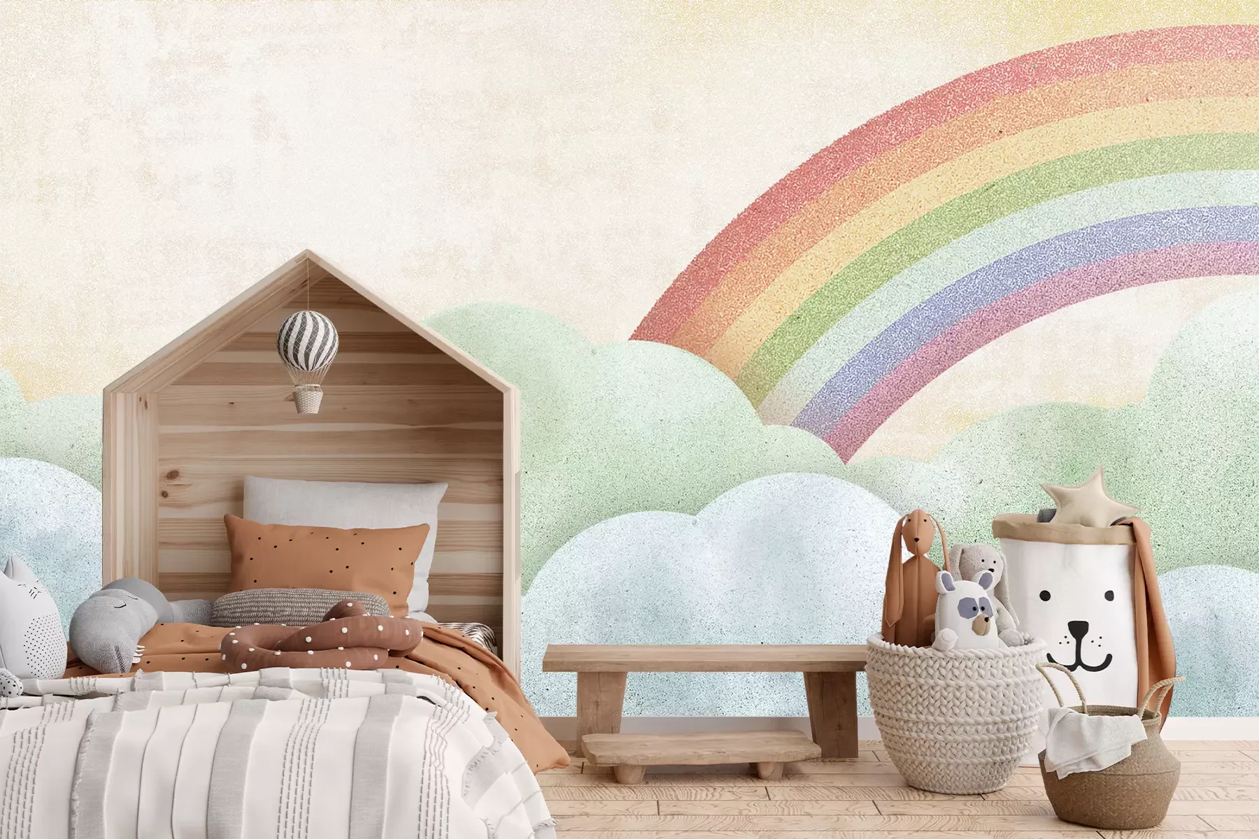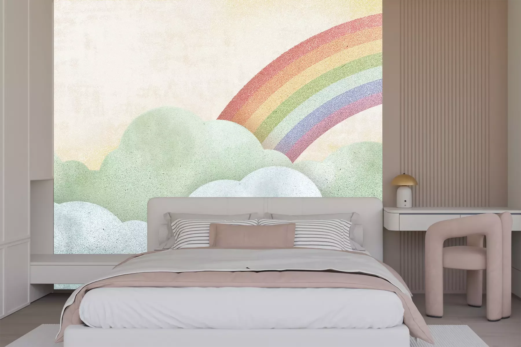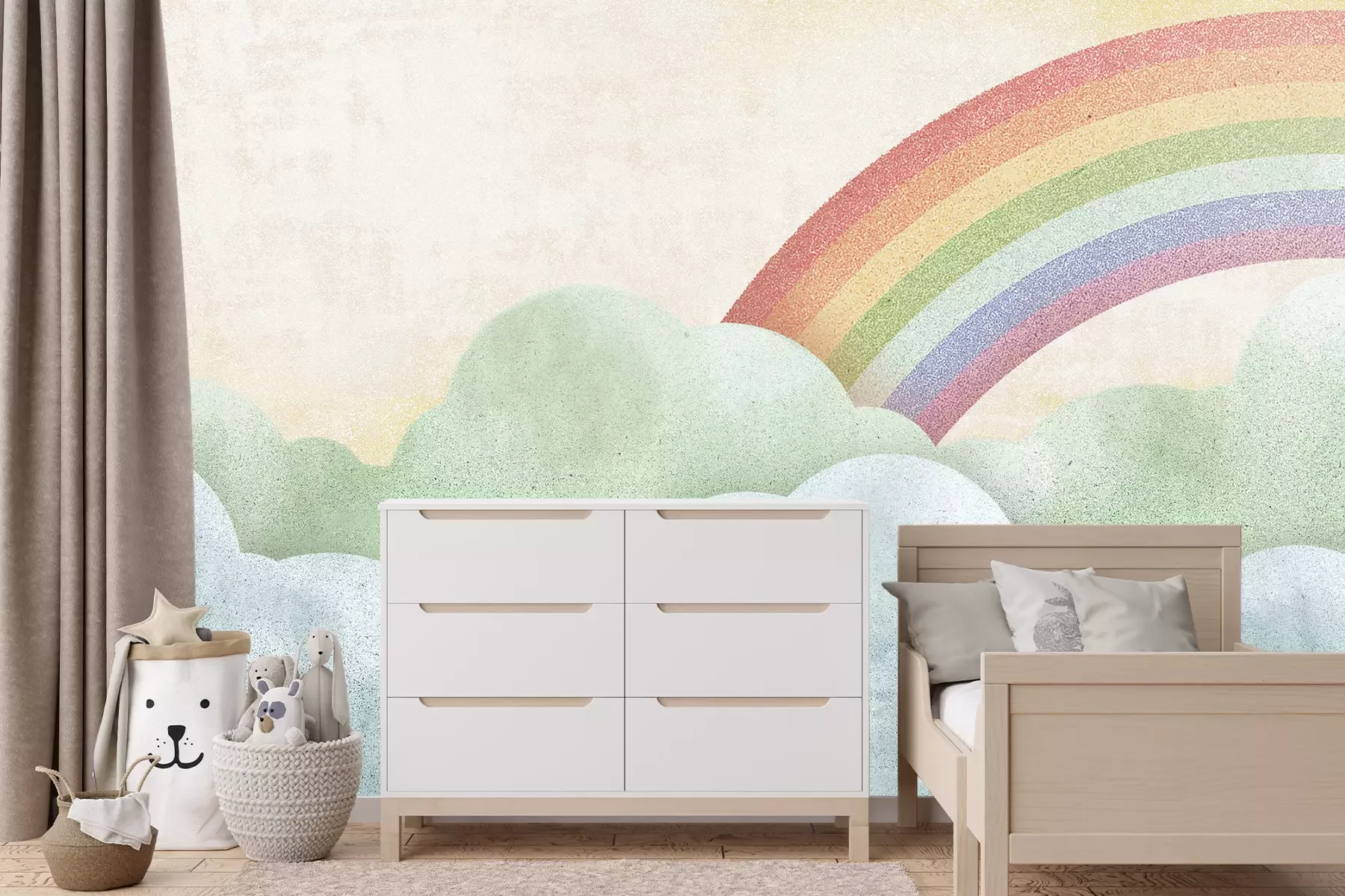 Het materiaal Premium+ is een gestructureerd vinyl op vlies met een gewicht van 255 g/m², dat kleine oneffenheden in de muur effectief camoufleert. De subtiele structuur van fijn zand geeft het oppervlak een exclusieve uitstraling, terwijl de halfmatte afwerking de diepte van de kleuren benadrukt. Het materiaal is dampdoorlatend, waardoor het ook in de keuken en badkamer kan worden gebruikt. De maximale breedte van één baan bedraagt 100 cm – bij grotere afmetingen wordt het fotobehang in meerdere gelijke banen verdeeld. De lijm wordt direct op de muur aangebracht en het behang wordt rand-aan-rand geplakt, wat zorgt voor een esthetisch resultaat zonder zichtbare naden. Het oppervlak kan gemakkelijk worden schoongemaakt door het voorzichtig af te nemen met een vochtige doek.