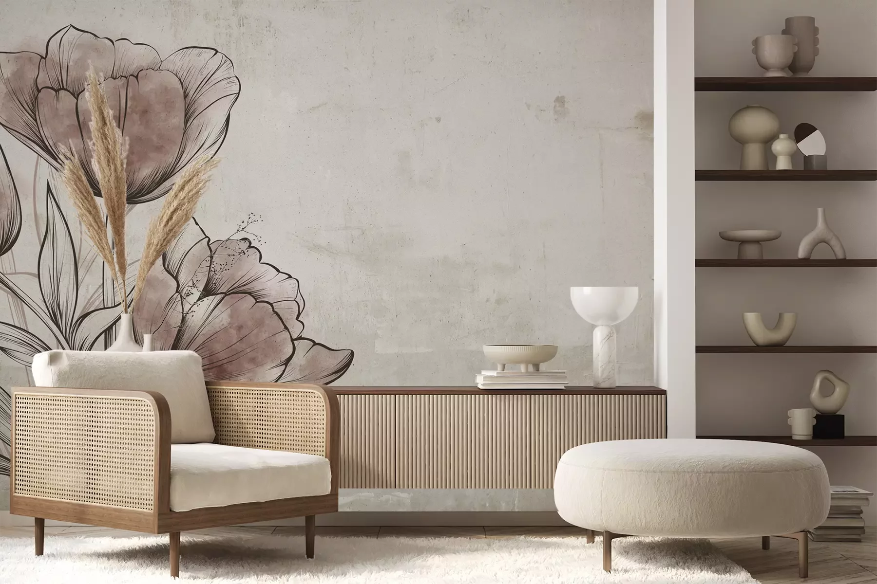 Het materiaal Premium+ is een gestructureerd vinyl op vlies met een gewicht van 255 g/m², dat kleine oneffenheden in de muur effectief camoufleert. De subtiele structuur van fijn zand geeft het oppervlak een exclusieve uitstraling, terwijl de halfmatte afwerking de diepte van de kleuren benadrukt. Het materiaal is dampdoorlatend, waardoor het ook in de keuken en badkamer kan worden gebruikt. De maximale breedte van één baan bedraagt 100 cm – bij grotere afmetingen wordt het fotobehang in meerdere gelijke banen verdeeld. De lijm wordt direct op de muur aangebracht en het behang wordt rand-aan-rand geplakt, wat zorgt voor een esthetisch resultaat zonder zichtbare naden. Het oppervlak kan gemakkelijk worden schoongemaakt door het voorzichtig af te nemen met een vochtige doek.