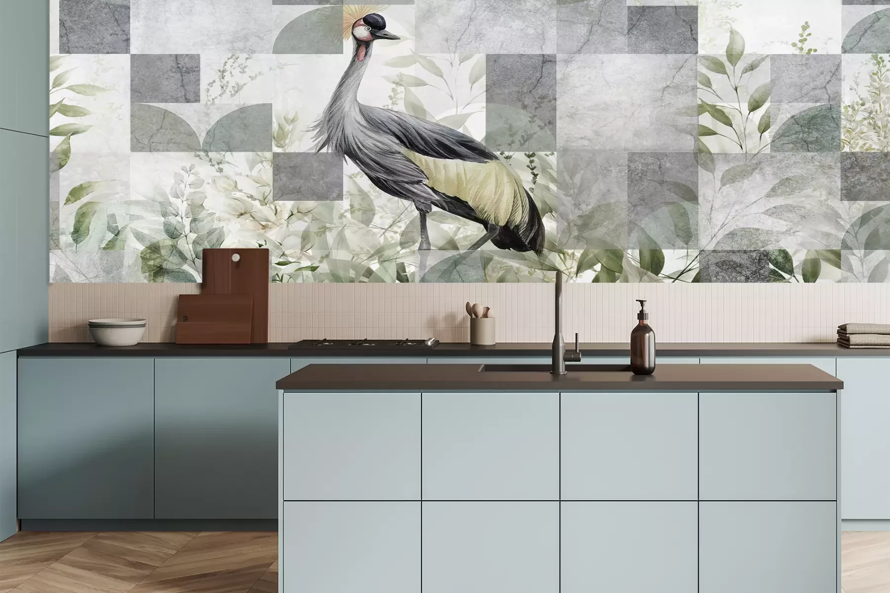 Het materiaal Premium is een glad vinyl op vlies, dat bestand is tegen uitrekken en vervorming. Het is dampdoorlatend – de muren kunnen vrij ademen – waardoor het geschikt is voor gebruik in de keuken en badkamer. Bij vervuiling kan het materiaal worden afgenomen met een vochtige doek. De maximale breedte van één baan bedraagt 95 of 105 cm, afhankelijk van de beschikbaarheid. Montage vindt plaats met de rand-aan-rand methode, wat een esthetisch resultaat zonder zichtbare naden oplevert. Omdat de lijm rechtstreeks op de muur wordt aangebracht, verloopt de installatie van het fotobehang snel en eenvoudig.