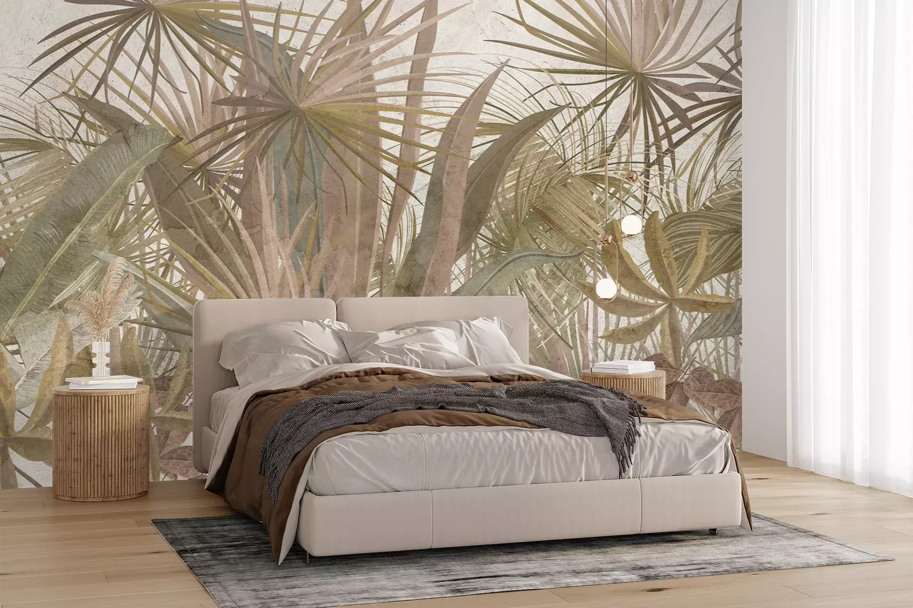 Het materiaal Premium+ is een gestructureerd vinyl op vlies met een gewicht van 255 g/m², dat kleine oneffenheden in de muur effectief camoufleert. De subtiele structuur van fijn zand geeft het oppervlak een exclusieve uitstraling, terwijl de halfmatte afwerking de diepte van de kleuren benadrukt. Het materiaal is dampdoorlatend, waardoor het ook in de keuken en badkamer kan worden gebruikt. De maximale breedte van één baan bedraagt 100 cm – bij grotere afmetingen wordt het fotobehang in meerdere gelijke banen verdeeld. De lijm wordt direct op de muur aangebracht en het behang wordt rand-aan-rand geplakt, wat zorgt voor een esthetisch resultaat zonder zichtbare naden. Het oppervlak kan gemakkelijk worden schoongemaakt door het voorzichtig af te nemen met een vochtige doek.