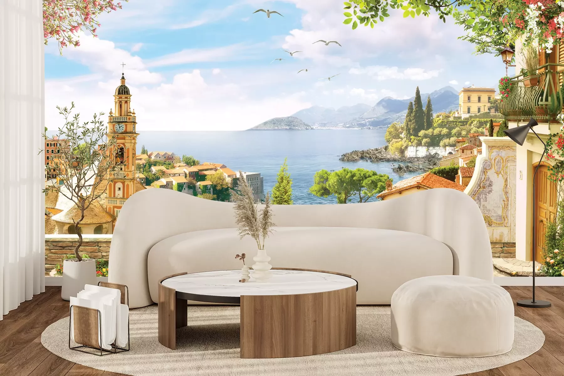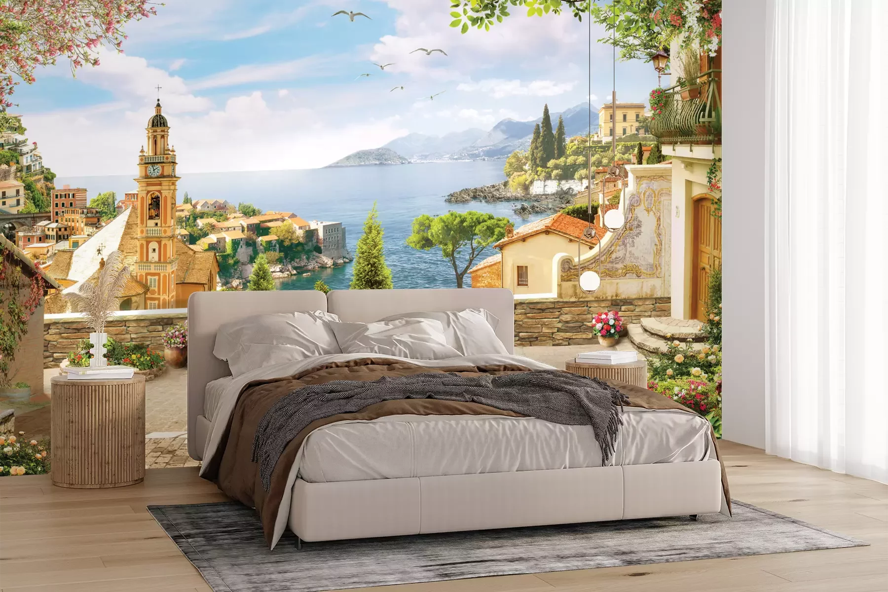 Het materiaal Premium+ is een gestructureerd vinyl op vlies met een gewicht van 255 g/m², dat kleine oneffenheden in de muur effectief camoufleert. De subtiele structuur van fijn zand geeft het oppervlak een exclusieve uitstraling, terwijl de halfmatte afwerking de diepte van de kleuren benadrukt. Het materiaal is dampdoorlatend, waardoor het ook in de keuken en badkamer kan worden gebruikt. De maximale breedte van één baan bedraagt 100 cm – bij grotere afmetingen wordt het fotobehang in meerdere gelijke banen verdeeld. De lijm wordt direct op de muur aangebracht en het behang wordt rand-aan-rand geplakt, wat zorgt voor een esthetisch resultaat zonder zichtbare naden. Het oppervlak kan gemakkelijk worden schoongemaakt door het voorzichtig af te nemen met een vochtige doek.
