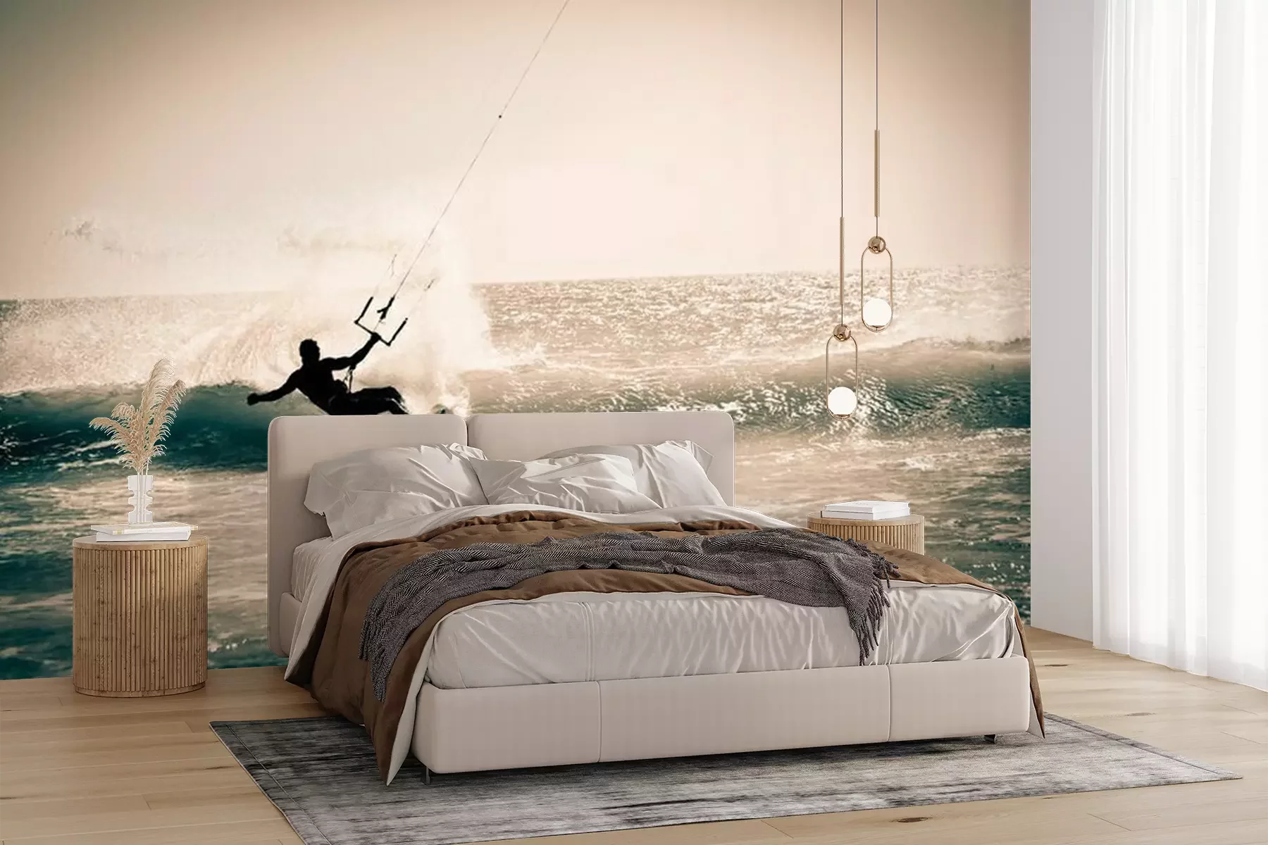 Kitesurfen in het schuim van de golvenFotobehang