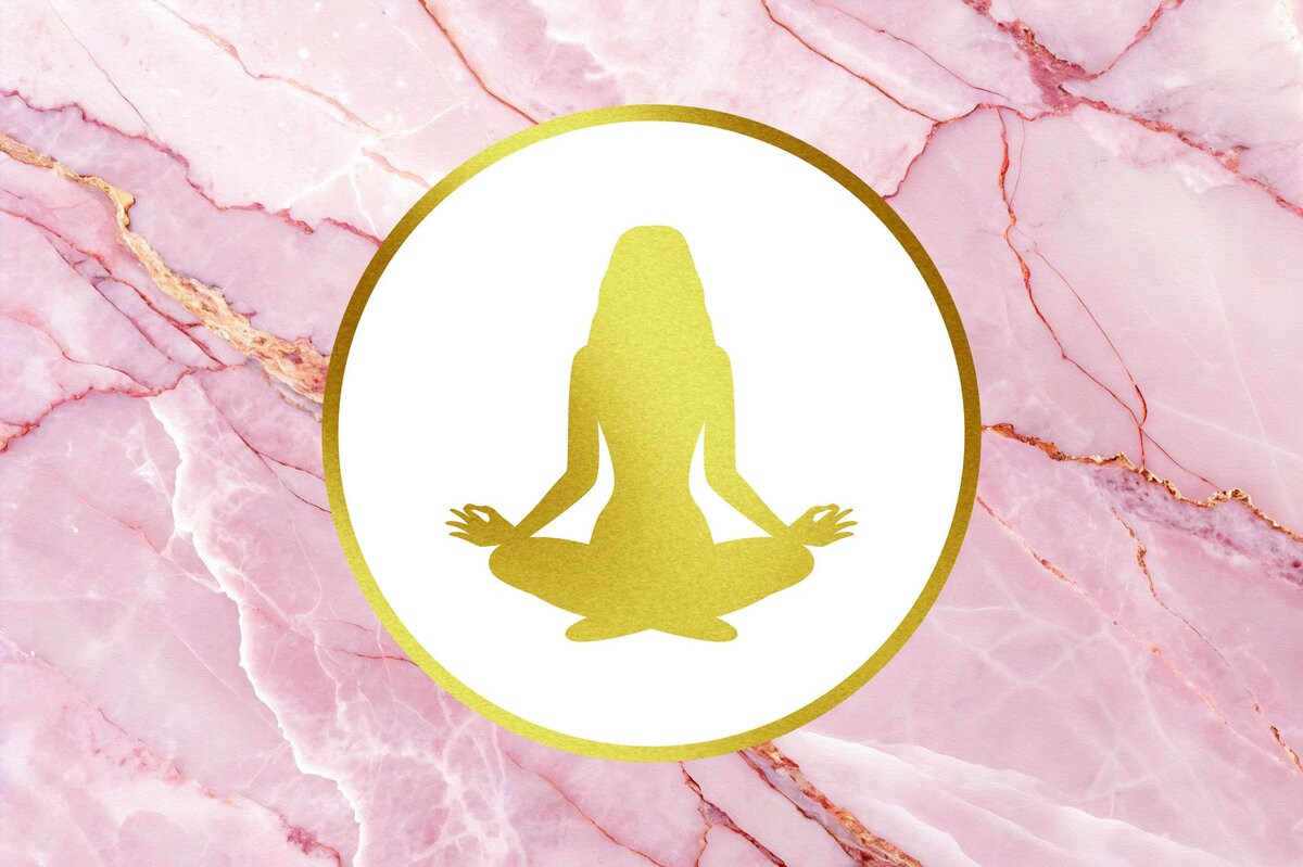 Fotobehang: Een mediterende vrouw, omringd door roze marmer.