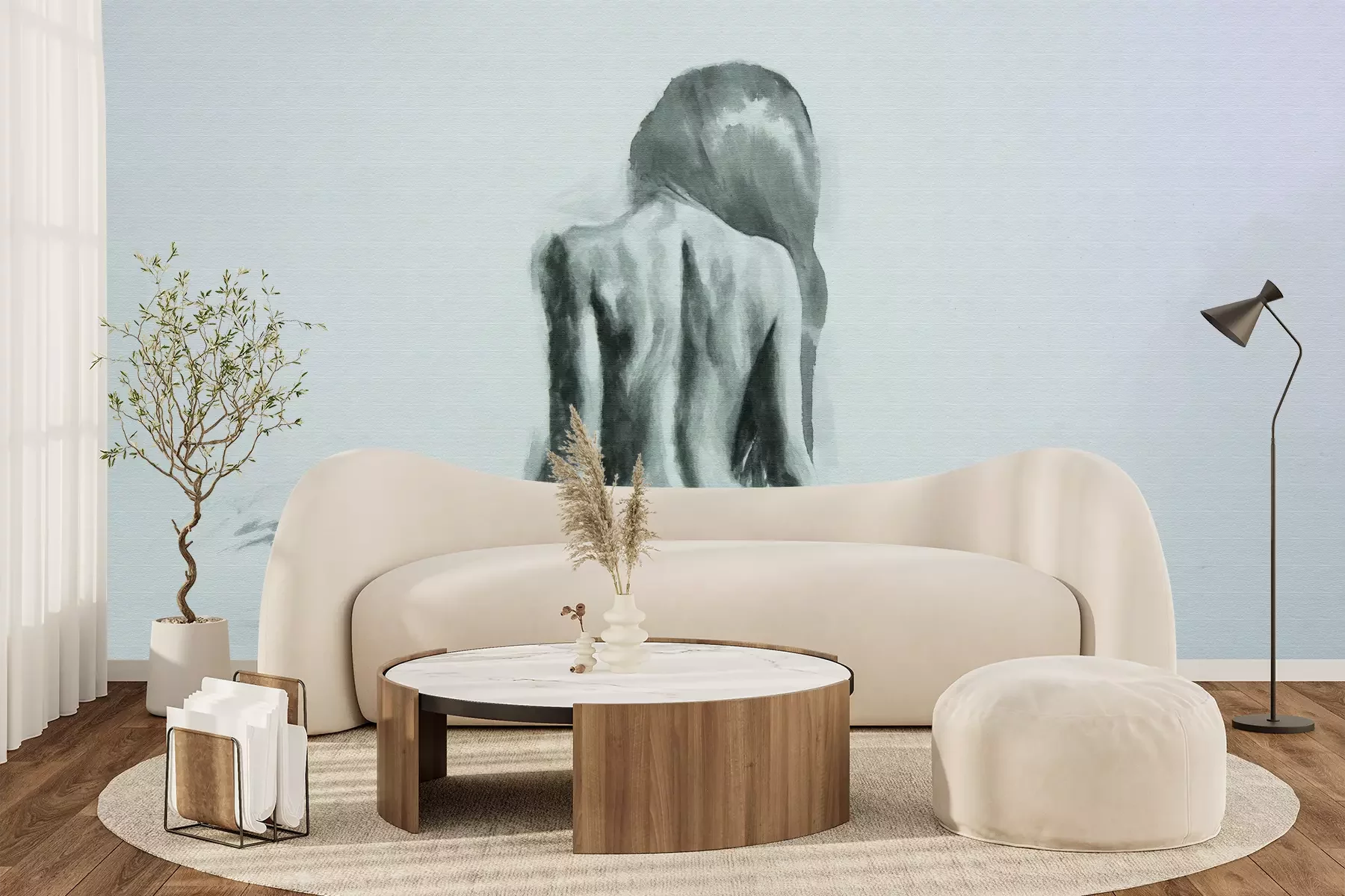 Het materiaal Premium+ is een gestructureerd vinyl op vlies met een gewicht van 255 g/m², dat kleine oneffenheden in de muur effectief camoufleert. De subtiele structuur van fijn zand geeft het oppervlak een exclusieve uitstraling, terwijl de halfmatte afwerking de diepte van de kleuren benadrukt. Het materiaal is dampdoorlatend, waardoor het ook in de keuken en badkamer kan worden gebruikt. De maximale breedte van één baan bedraagt 100 cm – bij grotere afmetingen wordt het fotobehang in meerdere gelijke banen verdeeld. De lijm wordt direct op de muur aangebracht en het behang wordt rand-aan-rand geplakt, wat zorgt voor een esthetisch resultaat zonder zichtbare naden. Het oppervlak kan gemakkelijk worden schoongemaakt door het voorzichtig af te nemen met een vochtige doek.